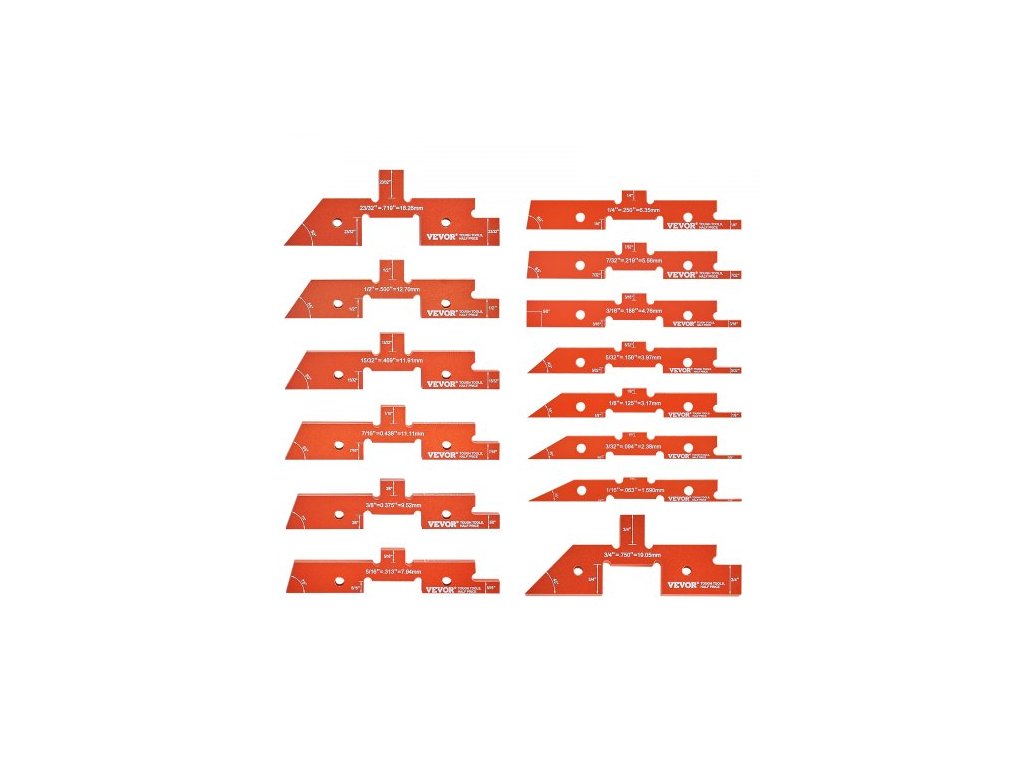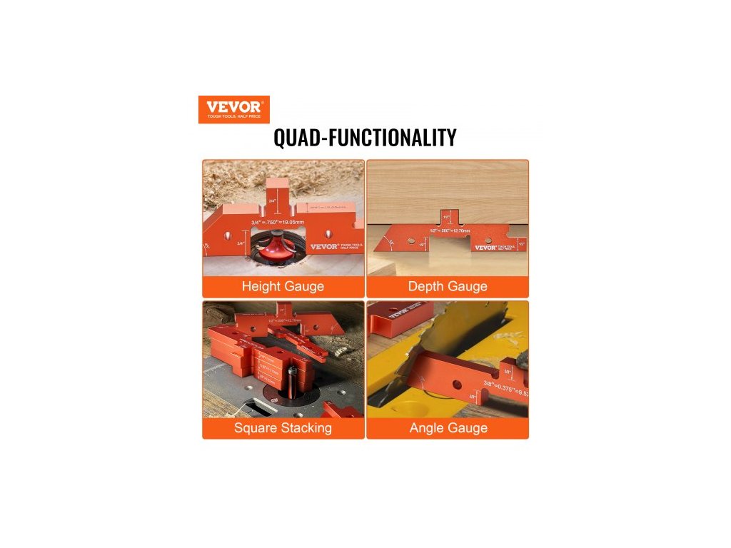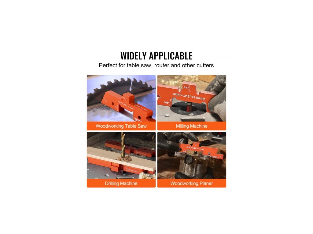 Sada držáků pro frézku, 14 ks, Přesné hliníkové držáky pro nastavení výšky, Sada výškoměrů s laserově gravírovanými značkami rozměrů, Úložné pouzdro, Měření hloubky, výšky a úhlu, pro příslušenství k frézkám a stolním pilámBezkonkurenční přesnost
