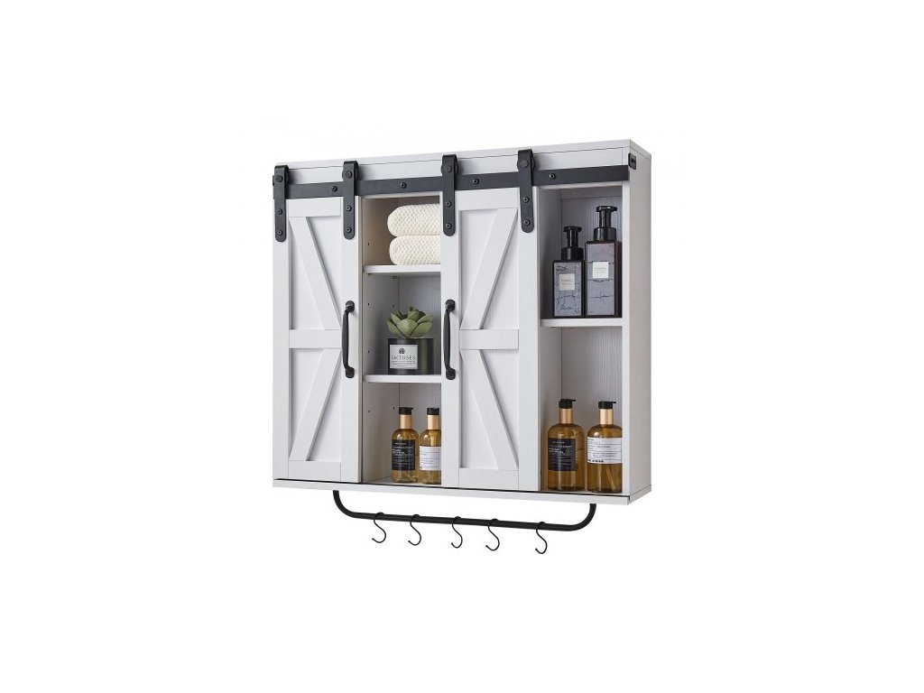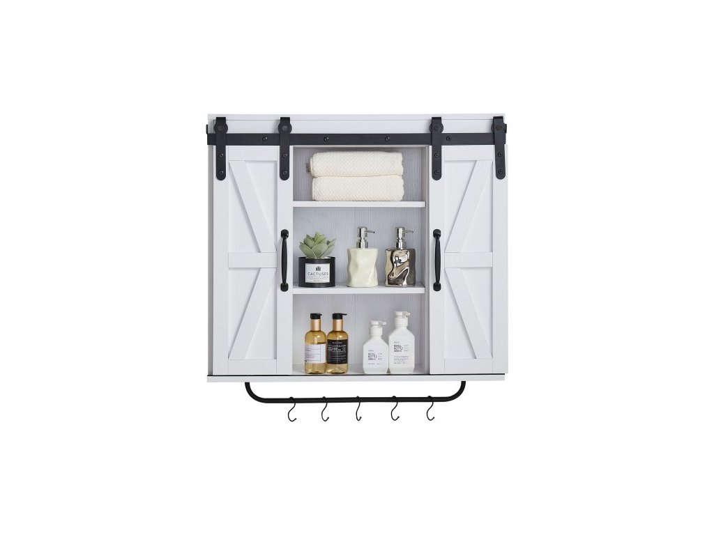 Nástěnná skříňka do koupelny, 2 dveře a nastavitelná police, nad toaletu, úložná skříňka na lékárničky, nástěnná, závěsný organizér s otevřenou přepážkou/držákem na ručníky /háčky do prádelny, kuchyně, bílá