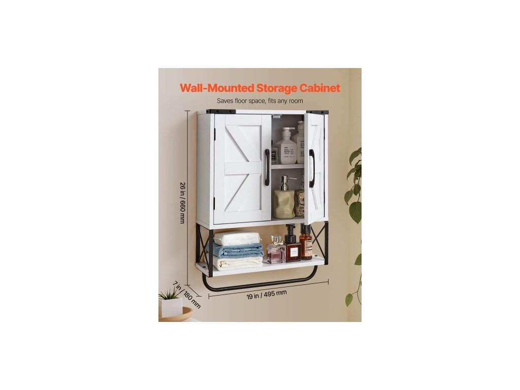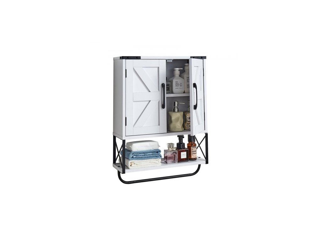 Nástěnná skříňka do koupelny, se 2 dveřmi a nastavitelnou policí, nad toaletu, úložná skříňka na lékárničky, nástěnná, závěsný organizér s otevřenou přepážkou a držákem na ručníky do prádelny, kuchyně, bílá