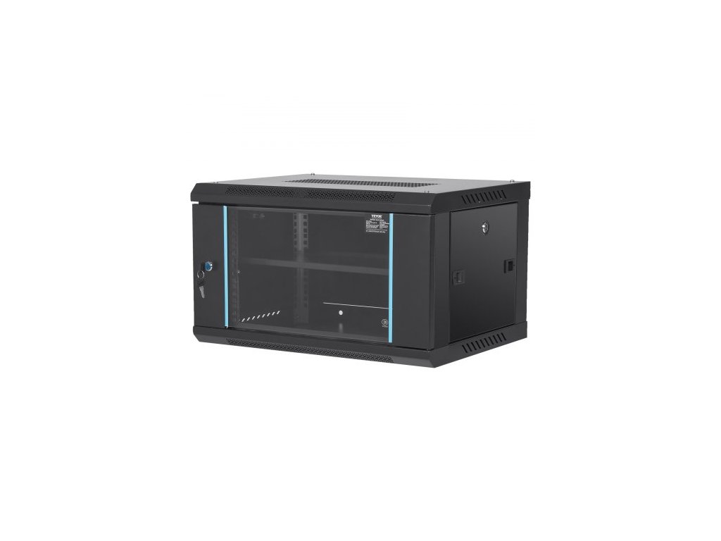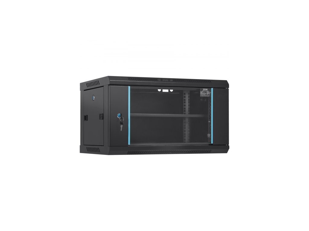 Nástěnná síťová serverová skříň 6U, hloubka 39,4 cm, skříň pro serverový rack, max. 90,7 kg Nosnost pro montáž na zem, s bočními panely uzamykatelných skleněných dveří, pro IT zařízení, A/V zařízeníVědecký design chlazení