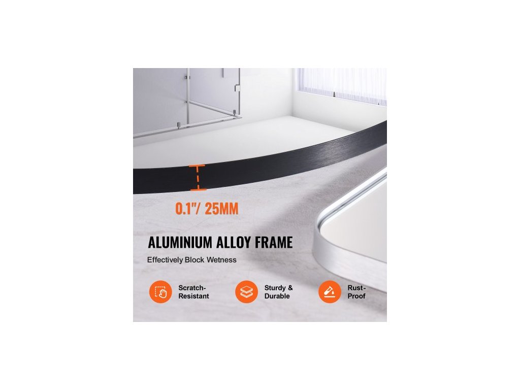 Nástěnné kosmetické zrcátko , tloušťka 0,15", zrcadlo 30 palců s rámem z hliníkové slitiny a fólií odolnou proti výbuchu, zrcadlo odolné proti poškrábání s držákem ve tvaru Z, vhodné do koupelny/ložnice/obývacího pokoje