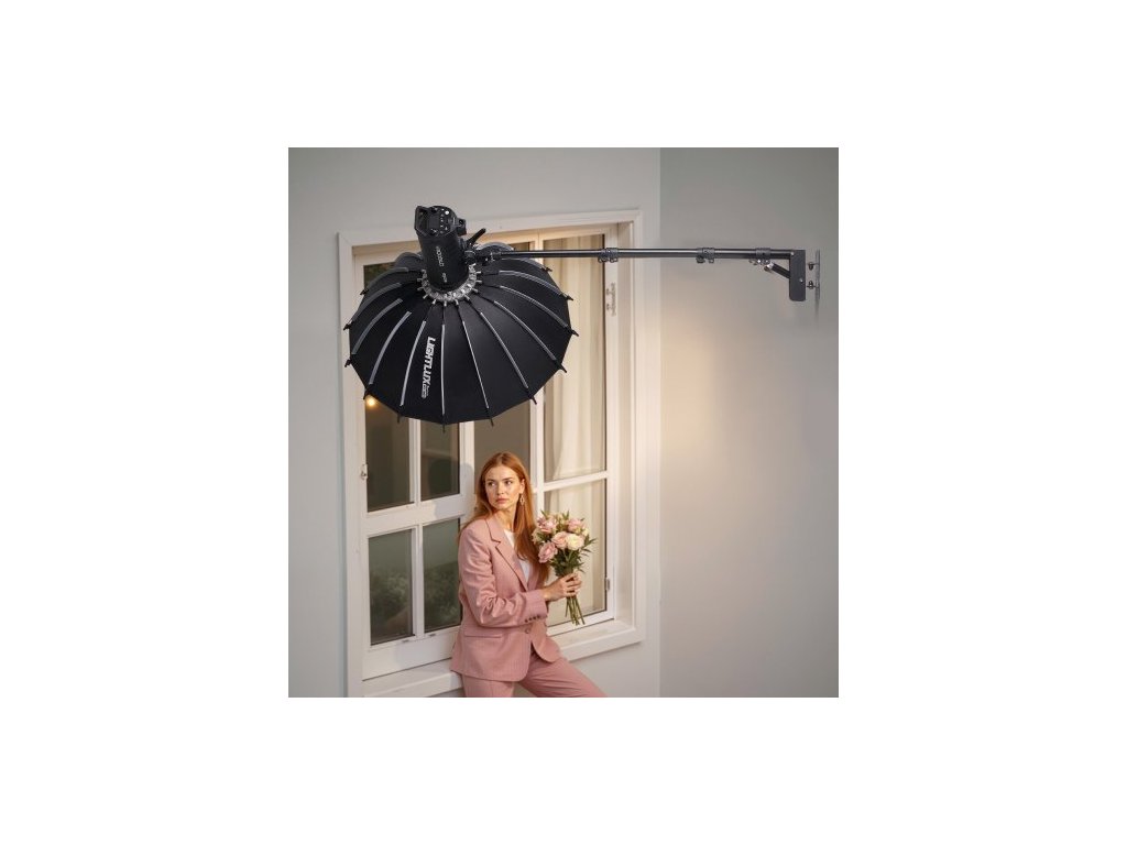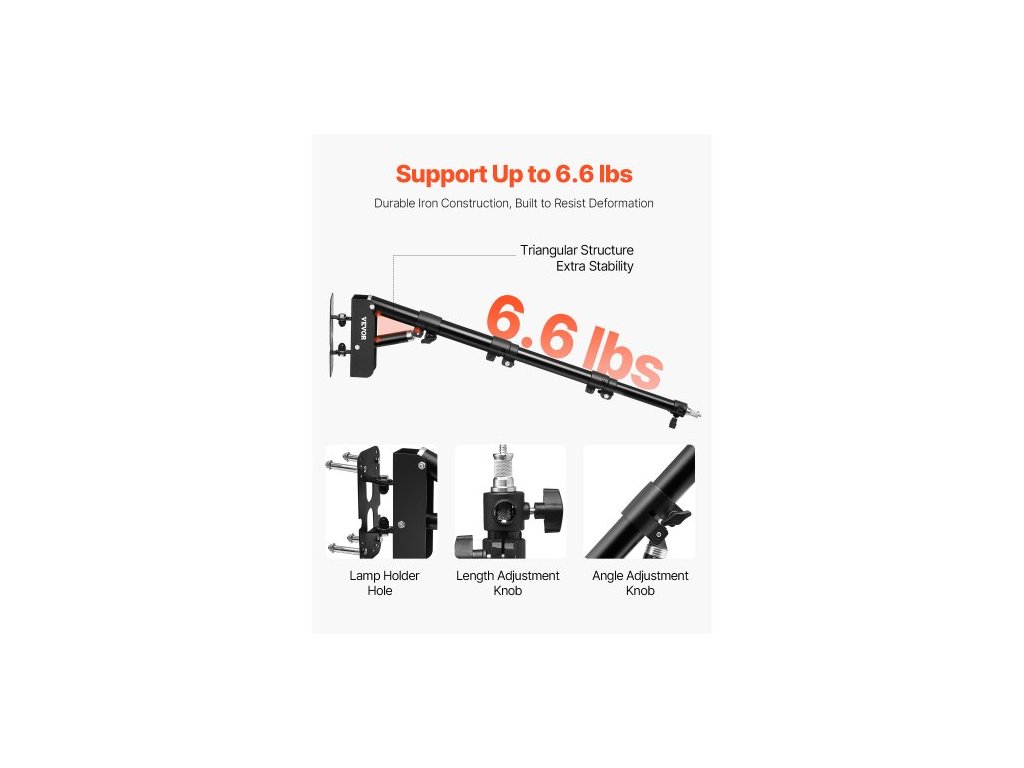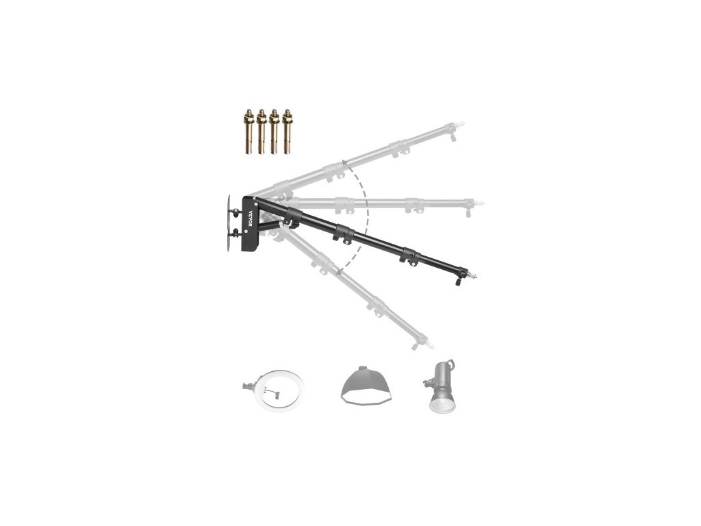 Nástěnné rameno pro kruhové světlo, 100 cm, trojúhelníkové rameno s otočením o 180°, odolný nástěnný stojan s podpěrou Tirpod, pro studiová video světla, monosvětla, fotografie, softboxy, reflektoryNástěnná konstrukce