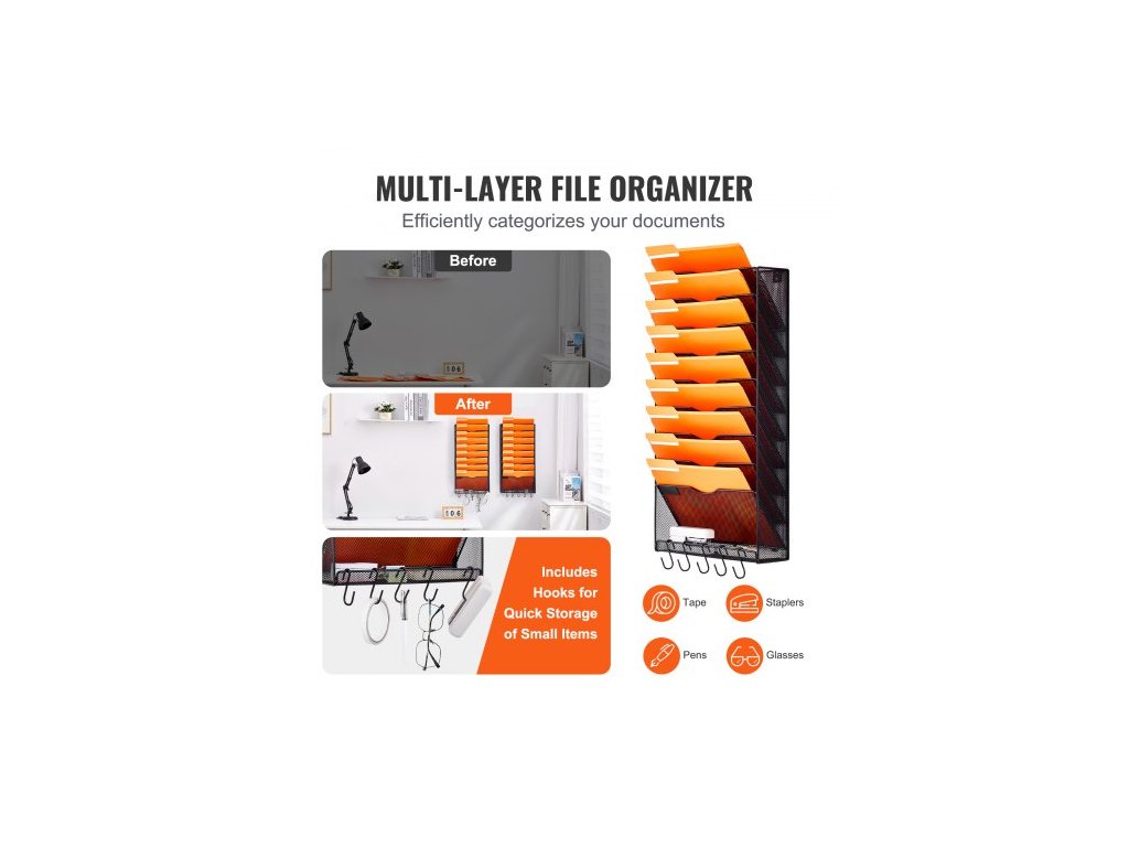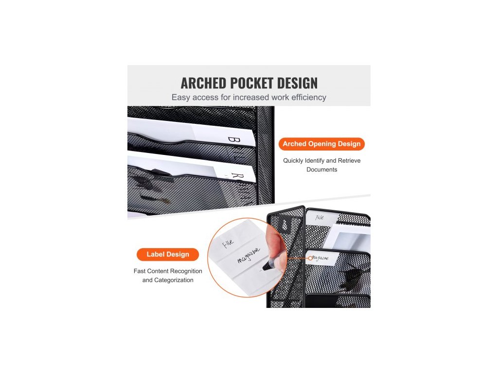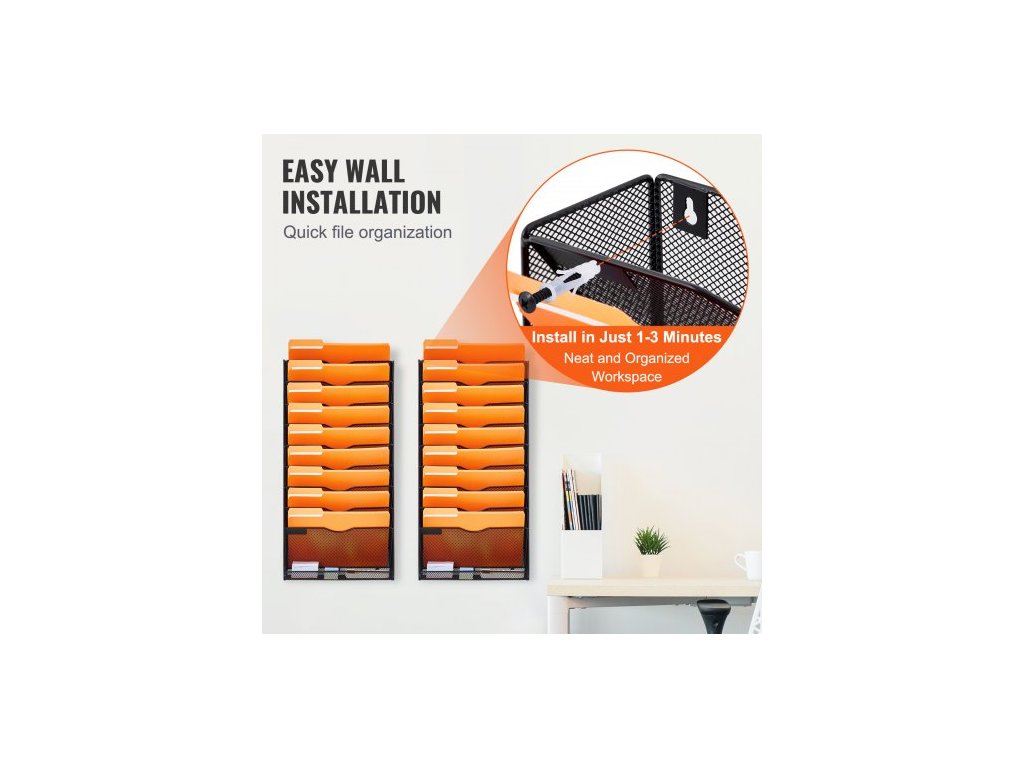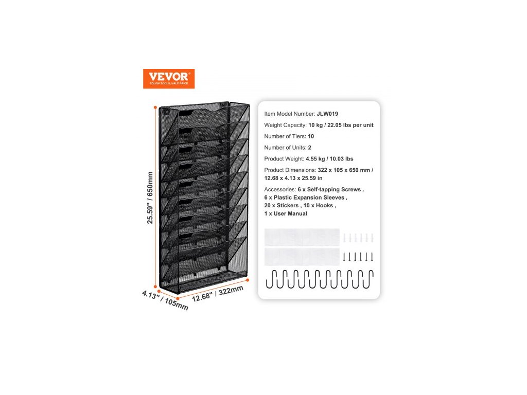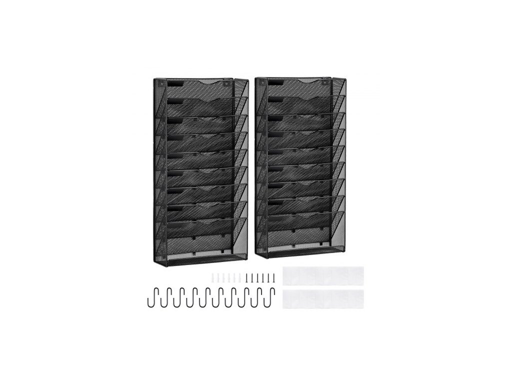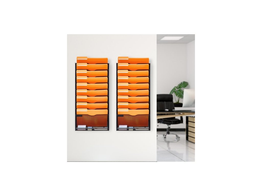 Nástěnný stojan na spisy , dvoudílný síťovaný nástěnný držák na spisy s 10 kapsami, nástěnná složka na časopisy, poštu, papíry a dokumenty, kovový nástěnný organizér na spisy s jmenovkou, pro kancelář, domácnost a školuZávěsný design