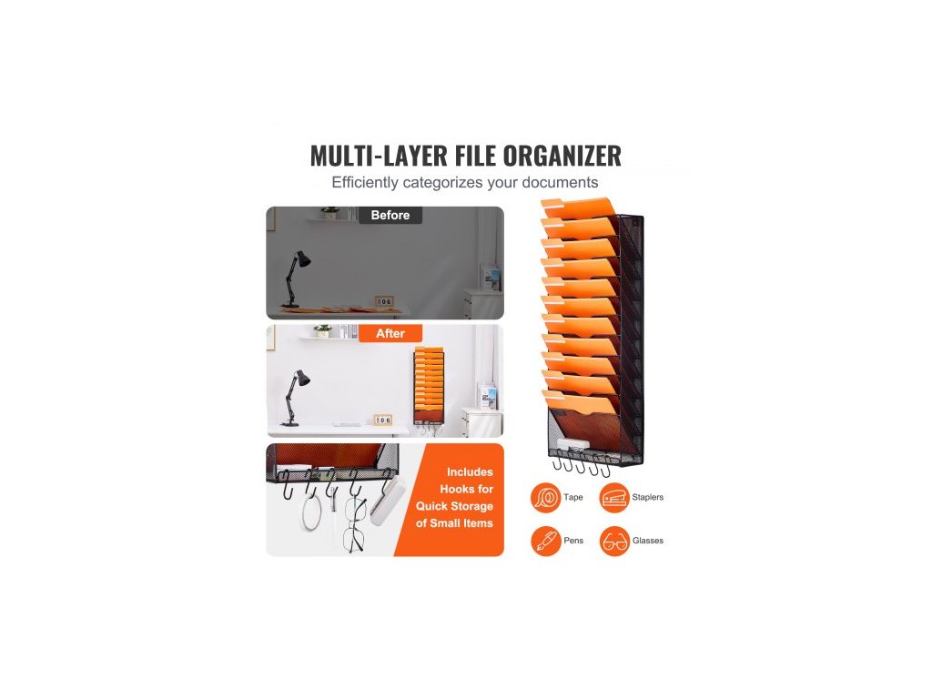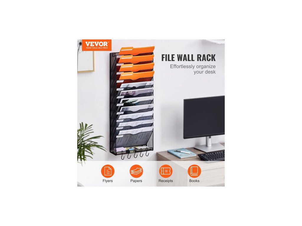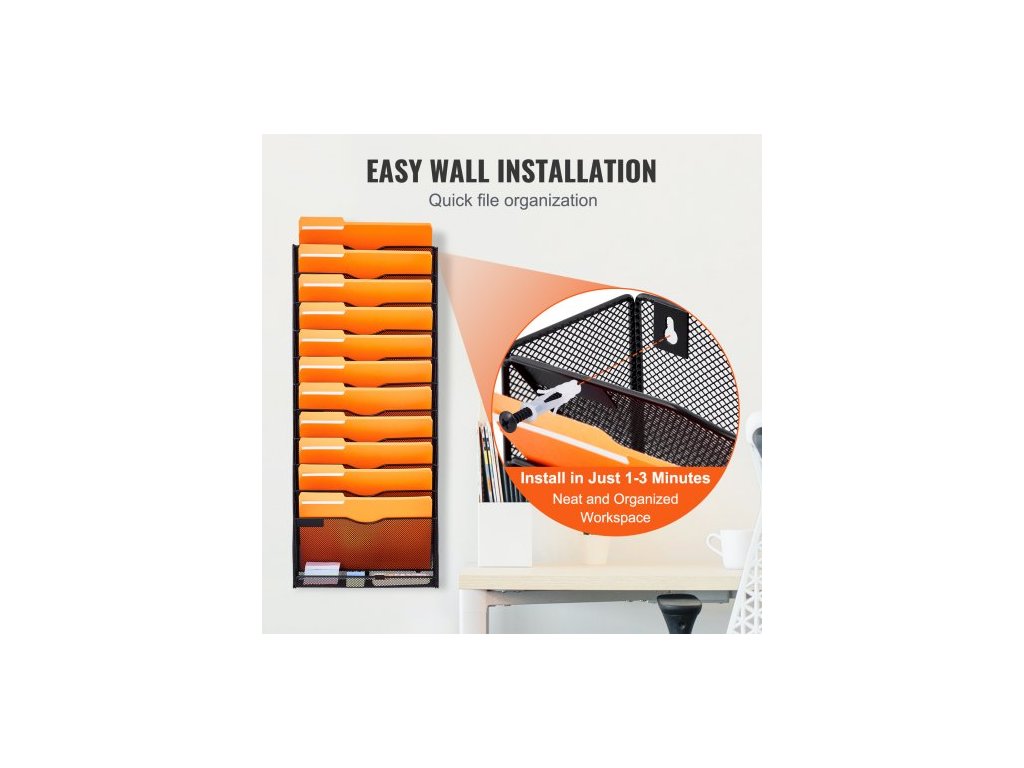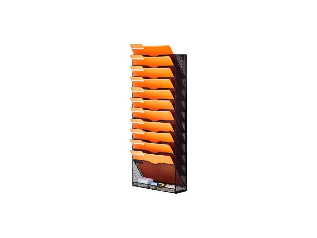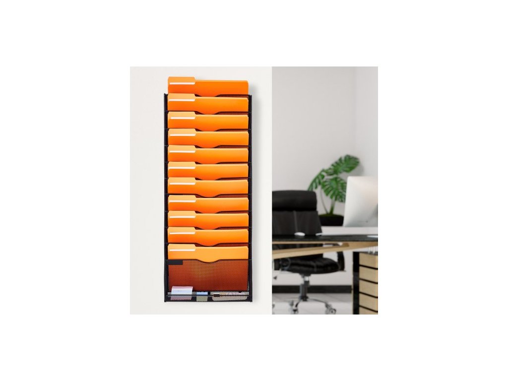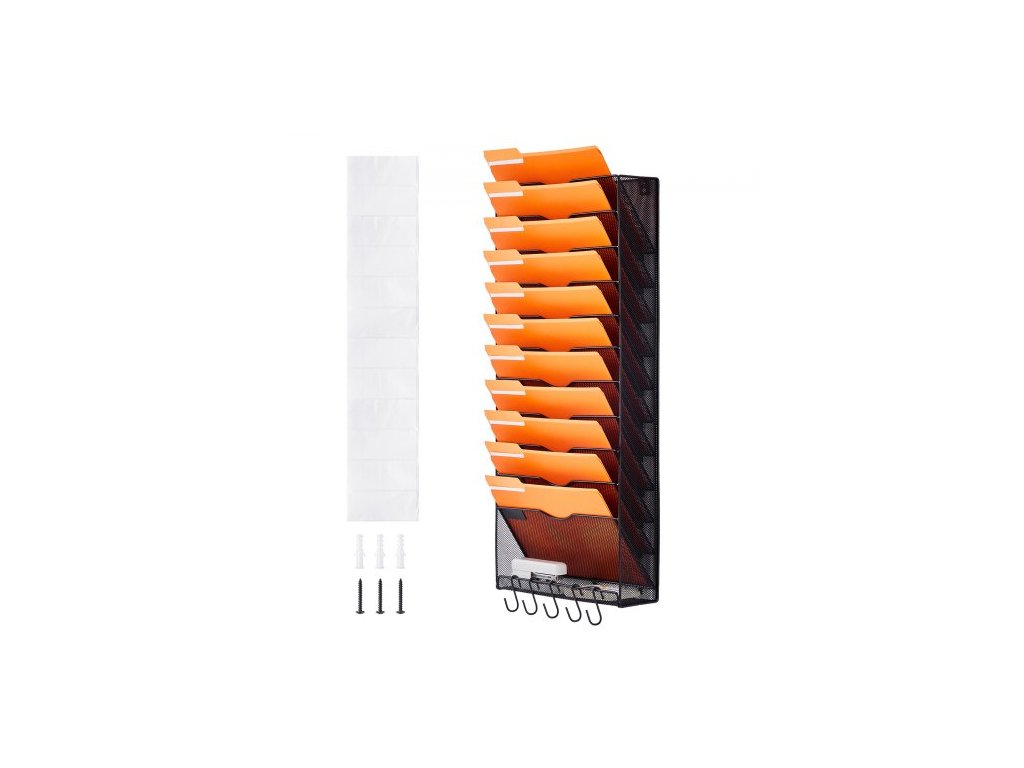 Nástěnný stojan na spisy , jednodílný síťovaný nástěnný držák na spisy s 12 kapsami, nástěnná složka na časopisy, poštu, papíry a dokumenty, kovový nástěnný organizér na spisy se jmenovkou, pro kancelář, domácnost a školuZávěsný design