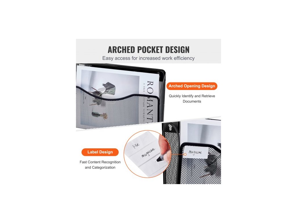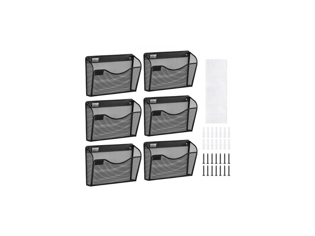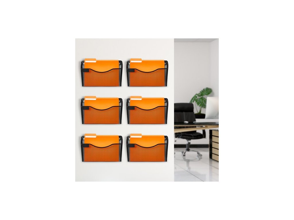Nástěnný stojan na spisy , šestidílný síťovaný nástěnný držák na spisy s 1 kapsou, nástěnná složka na časopisy, poštu, papíry a dokumenty, kovový nástěnný organizér na spisy se jmenovkou, pro kancelář, domácnost a školuZávěsný design