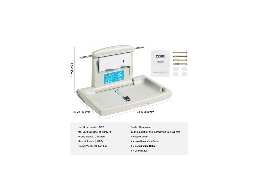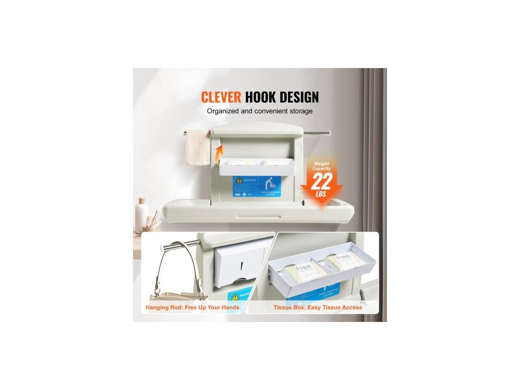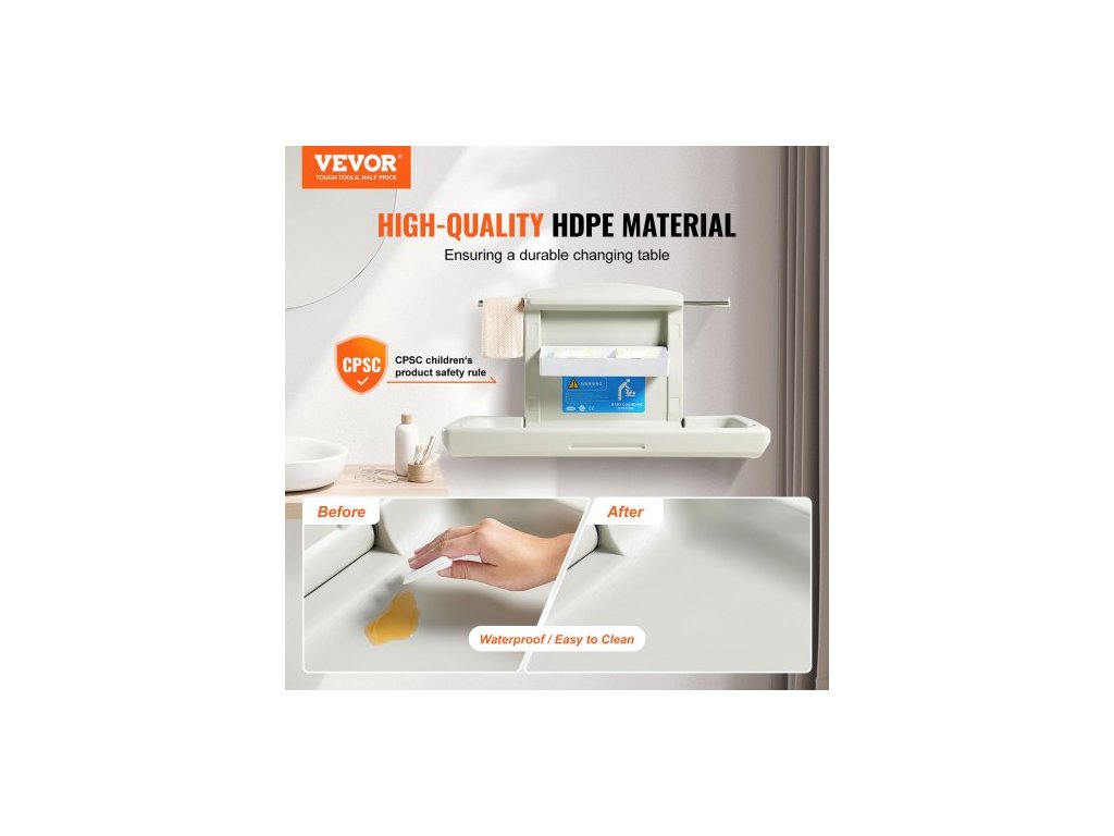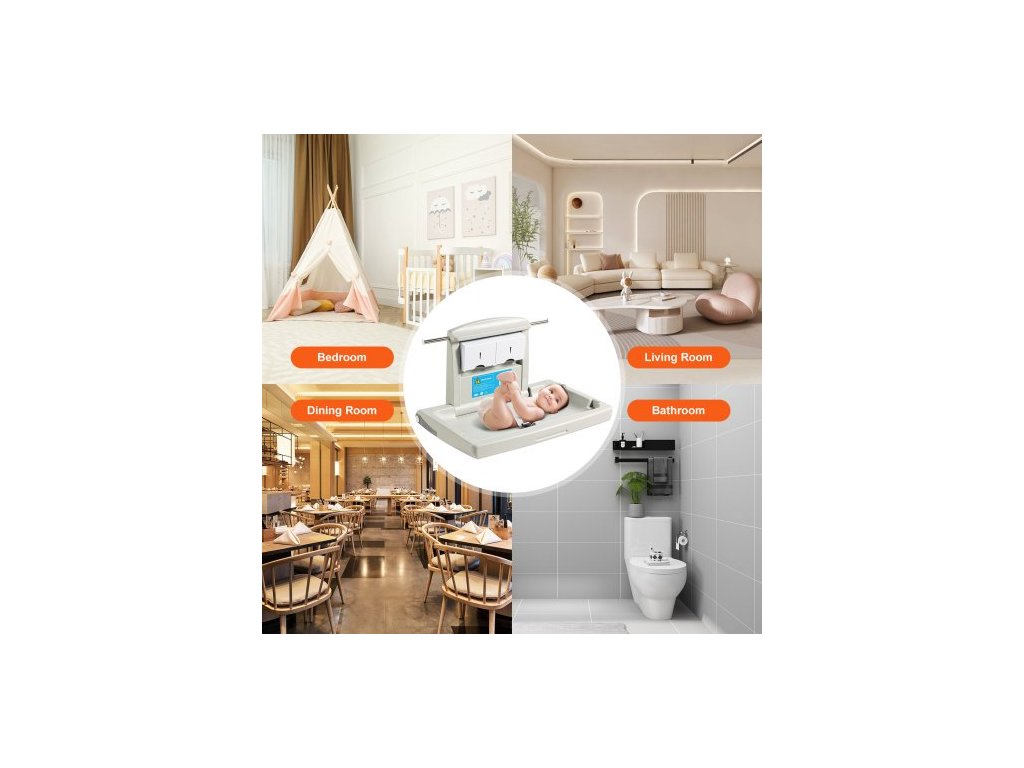 Nástěnný přebalovací pult , horizontální skládací přebalovací pult s bezpečnostními popruhy a závěsnými tyčemi, použití v komerčních koupelnách, denních centrech pro novorozence a kojencePrémiový HDPE materiál