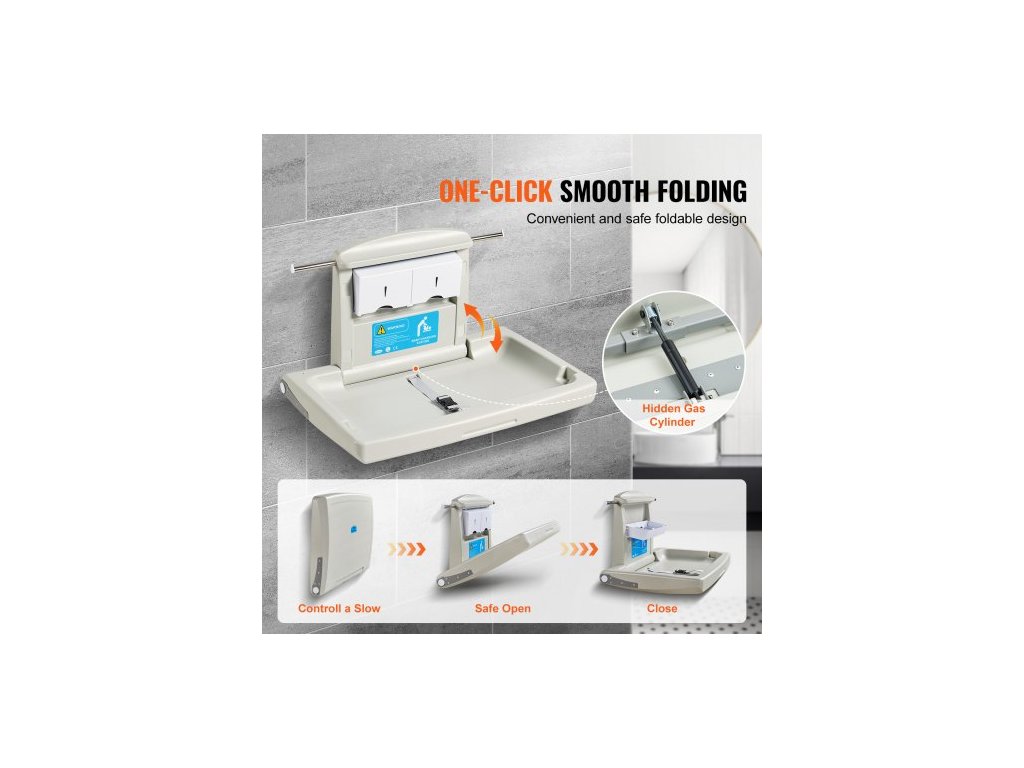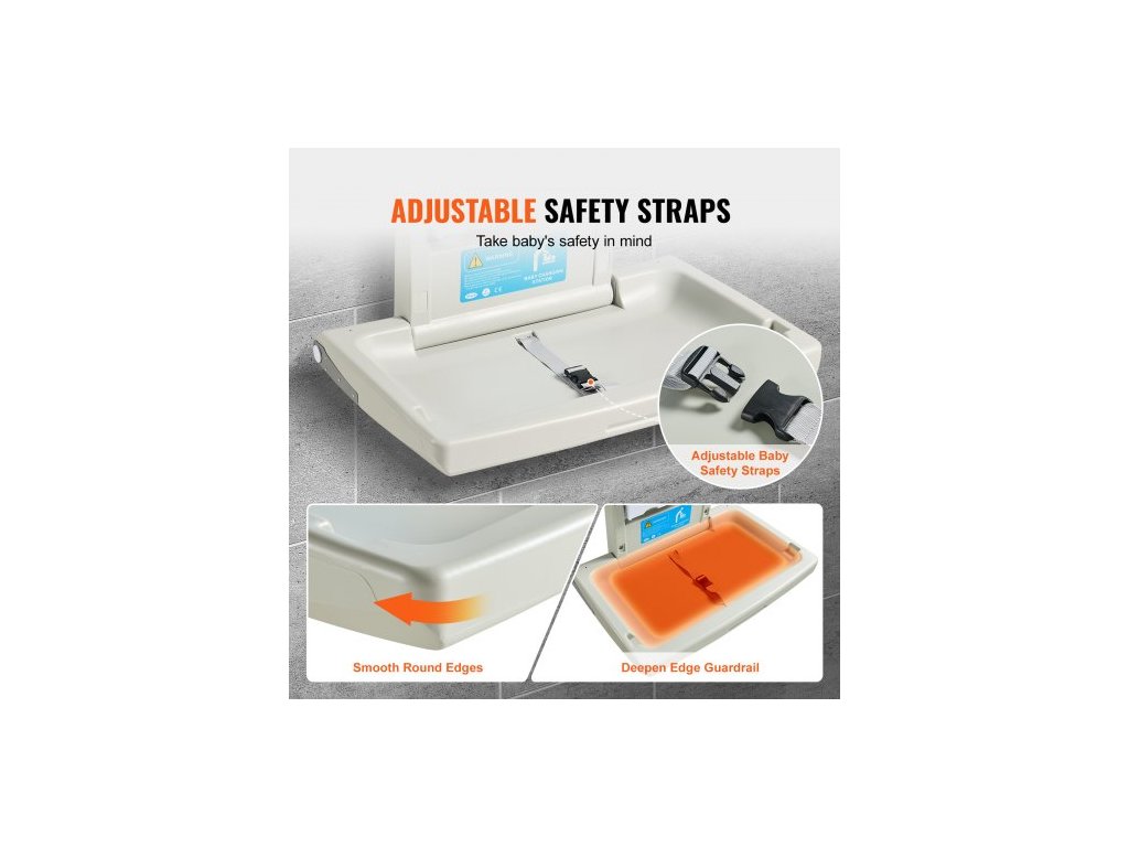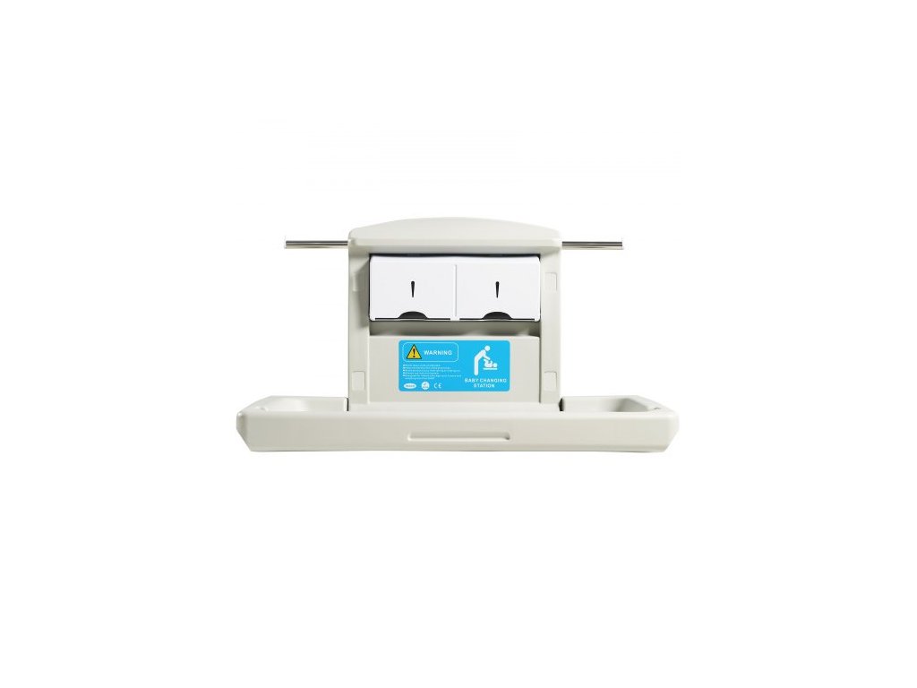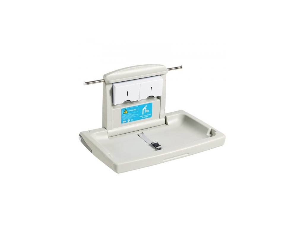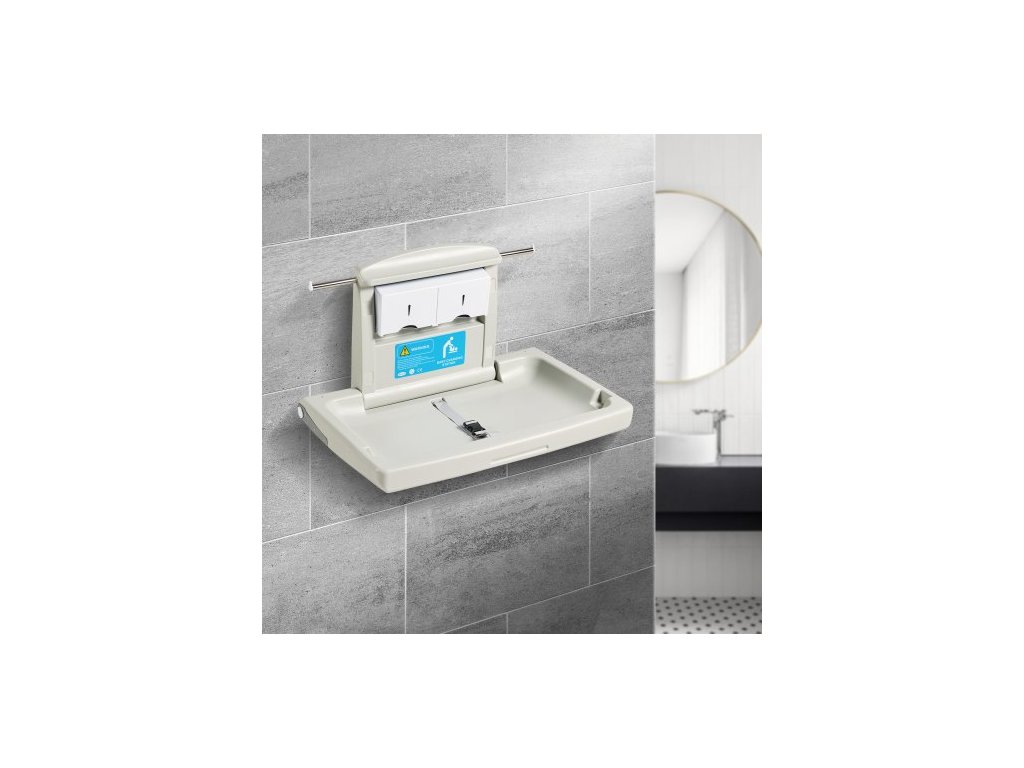 Nástěnný přebalovací pult , horizontální skládací přebalovací pult s bezpečnostními popruhy a závěsnými tyčemi, použití v komerčních koupelnách, denních centrech pro novorozence a kojence