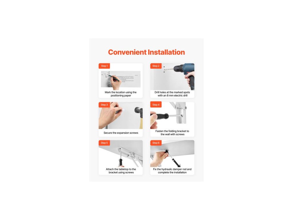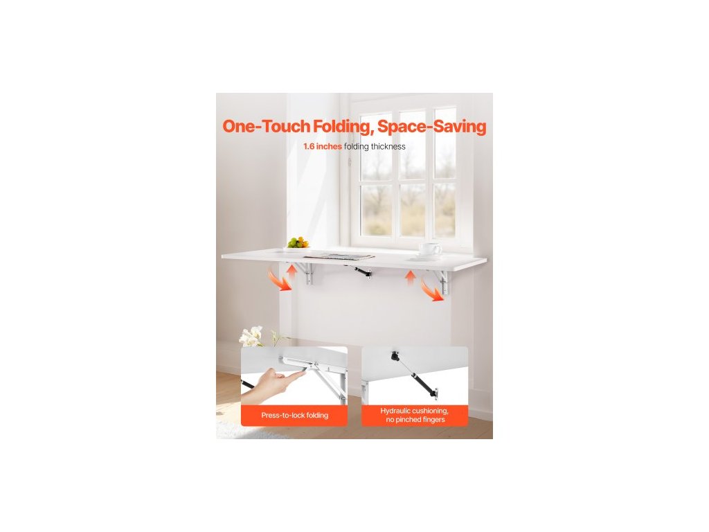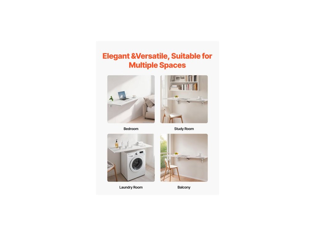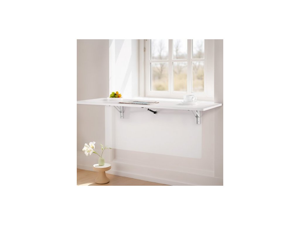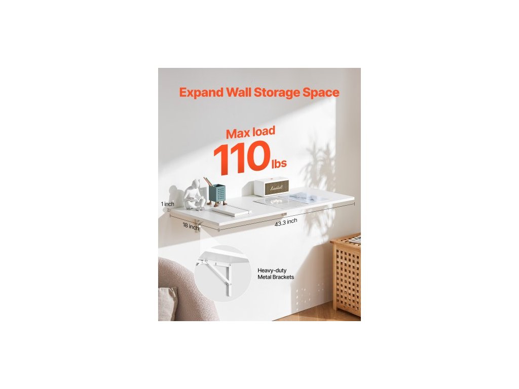 Skládací stůl k připevnění na zeď, 43,3 x 18 palců, plovoucí stůl s železným držákem, skládací stůl pro malé prostory, domácí kancelář, jídelnu, prádelnu, kuchyň, bar, bílýStylové a praktické