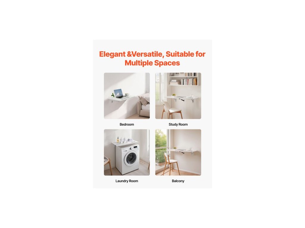 Skládací stůl k montáži na zeď, 47,2 x 19,7 palců, plovoucí stůl s železným držákem, skládací stůl pro malé prostory, domácí kancelář, jídelnu, prádelnu, kuchyň, bar, bílýStylové a praktické