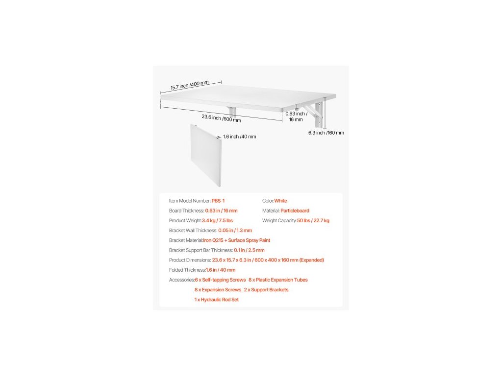 Rozměry výrobku (rozložený): 600 x 400 x 160 mm,Povrchová úprava držáku: Barva,Nosnost: 23 kg,Rozměry: 600 x 400 mm,Číslo modelu položky: PBS-1,Hmotnost výrobku: 3,4 kg,Materiál: Dřevotříska,Materiál držáku: Železo Q215,Tloušťka desky: 16 mm