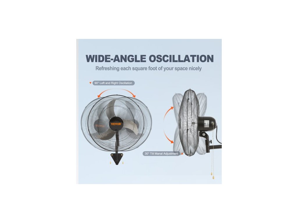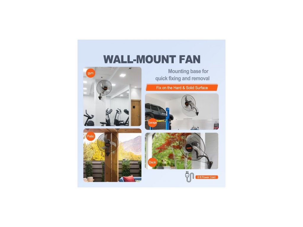 Nástěnný ventilátor , 19palcový oscilační nástěnný ventilátor, 4650 CFM, 3 rychlosti, komerční nebo rezidenční ventilátor pro chlazení skladu, skleníku, dílny, terasy, sklepa, černýNainstalujte kovovou základnu