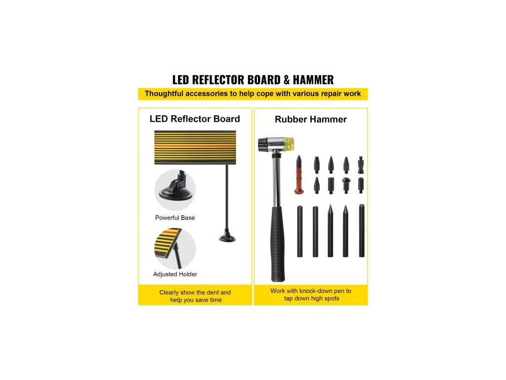 Gumové kladivo na promáčkliny a LED reflektor