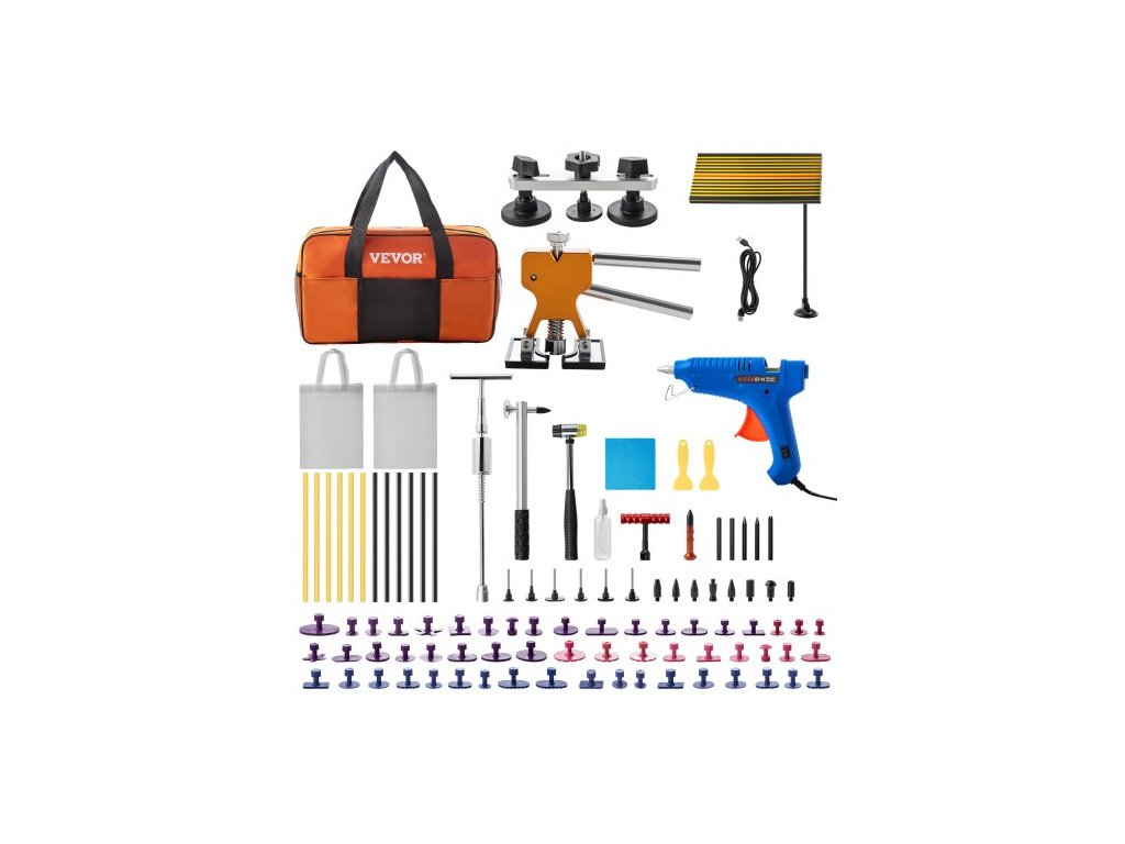 Nástroj na odstraňování promáčklin , 89 kusů nástrojů na opravu promáčklin bez lakování, sada na opravu promáčklin s LED deflektorem, sada na vytahování promáčklin s lepidlem, vytahování promáčklin z auta, drobné promáčkliny, promáčkliny na dveřích