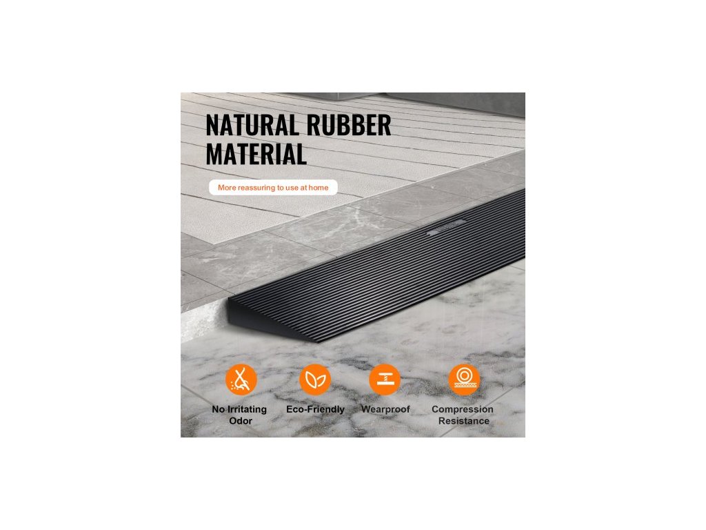 Nástupní rampa s výškou 1,2" a zkracovatelným prahem pro zametacího robota, nájezd pro invalidní vozíky z přírodního kaučuku o šířce 35,4", protiskluzová plná pryžová rampa s oboustrannou páskou pro dveře, příjezdové cesty, koupelny, hladké dlaždice