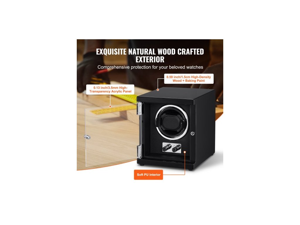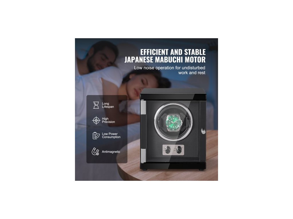 Natahovač hodinek , jeden natahovač hodinek pro pánské a dámské automatické hodinky, s velmi tichým japonským motorem Mabuchi, modrým LED světlem a adaptérem, skořepinou z vysoce husté lepenky a černým PUVysoce kvalitní natahovač hodinek