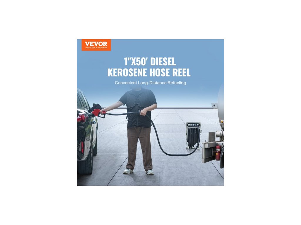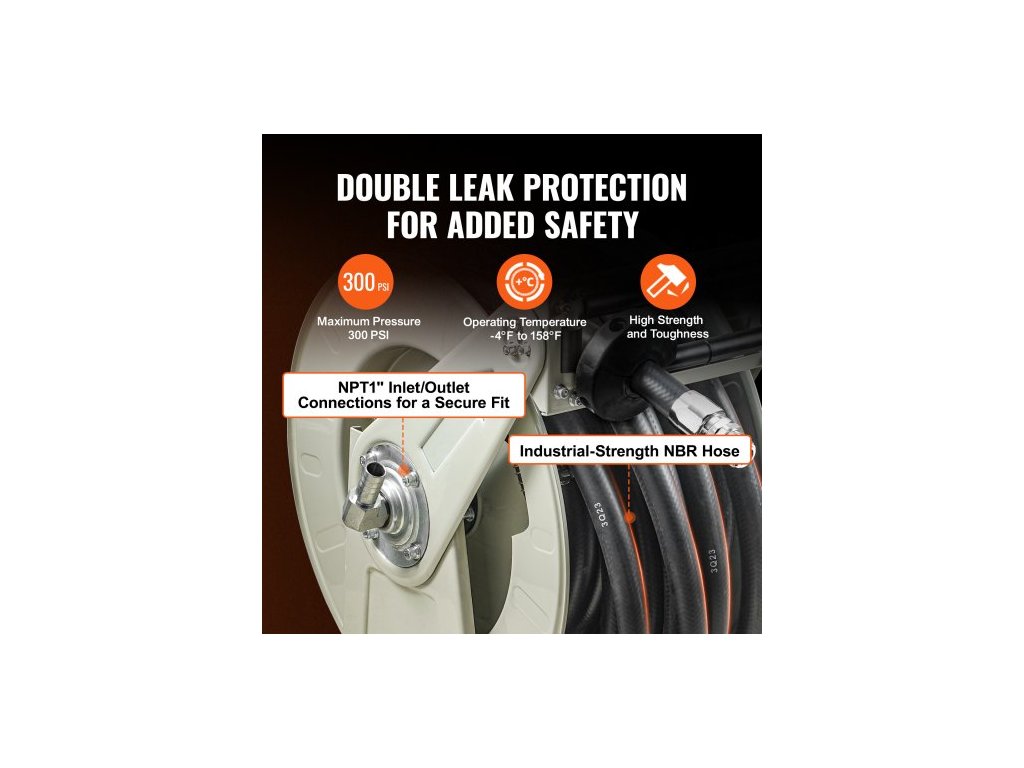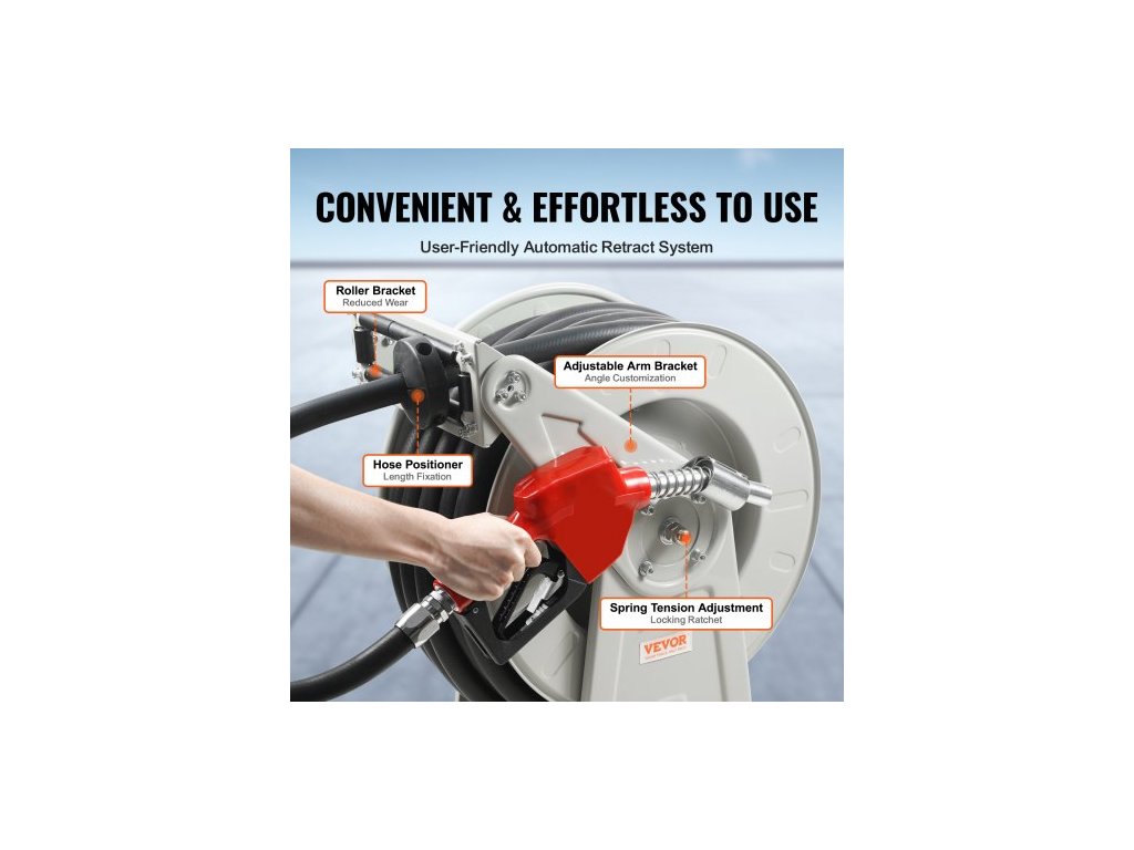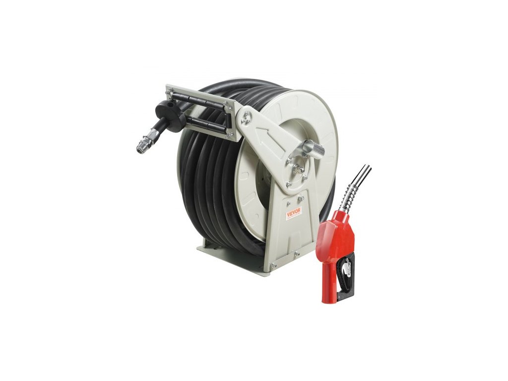Naviják palivové hadice , 25,4 mm x 15,24 m, Extra dlouhý zatahovací naviják na naftovou hadici, Odolná konstrukce z uhlíkové oceli s automatickou palivovou pistolí, Pryžová hadice NBR pro letadla, lodní vozidla, cisternové vozy, 20,68 barůTankování kdekoli a kdykoli