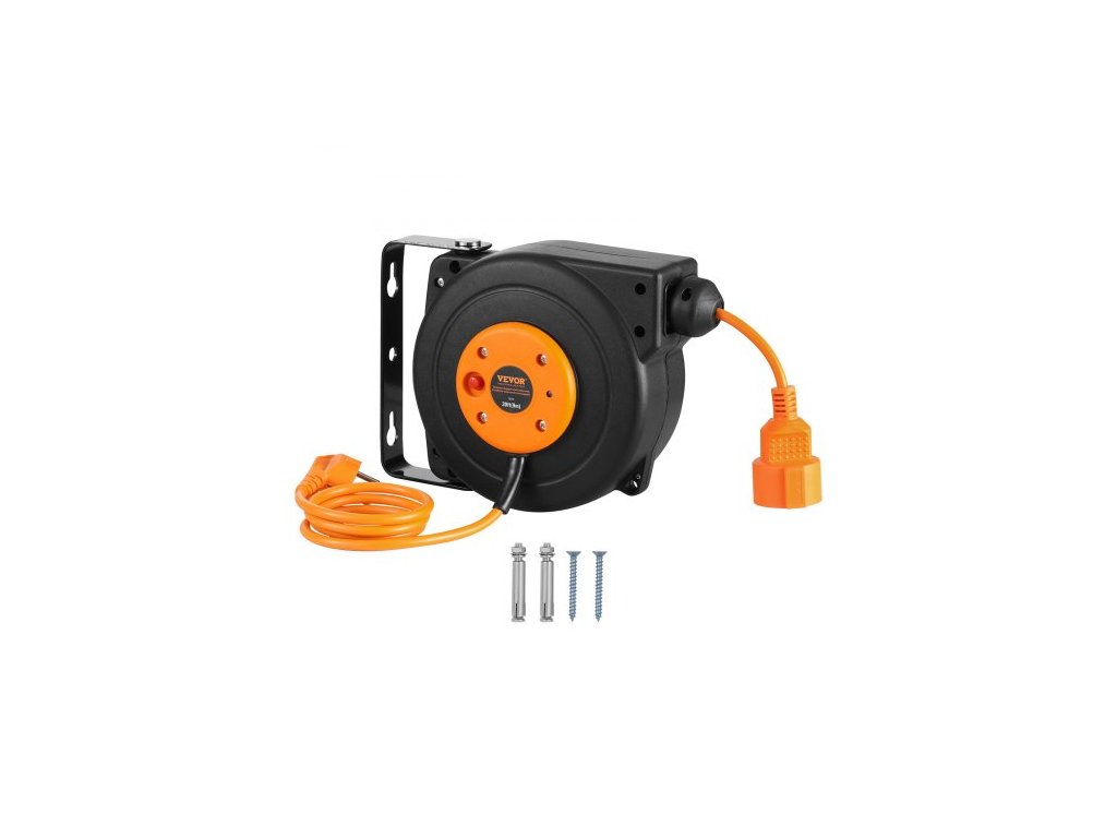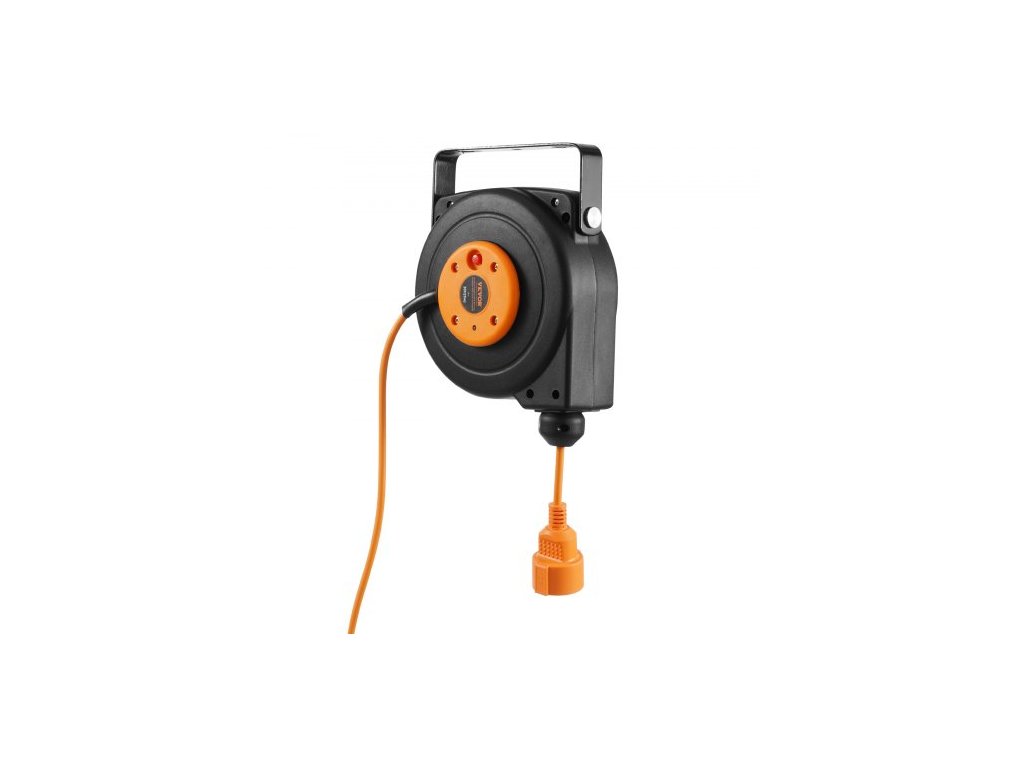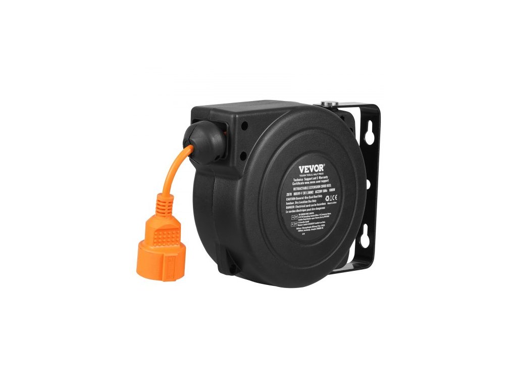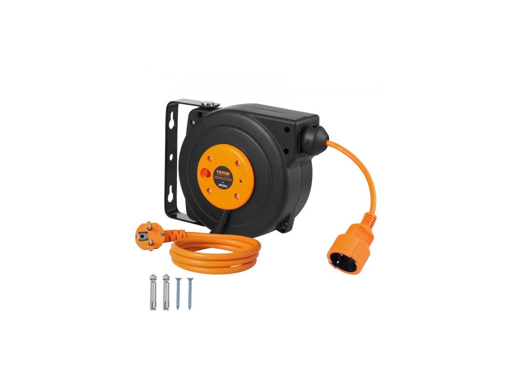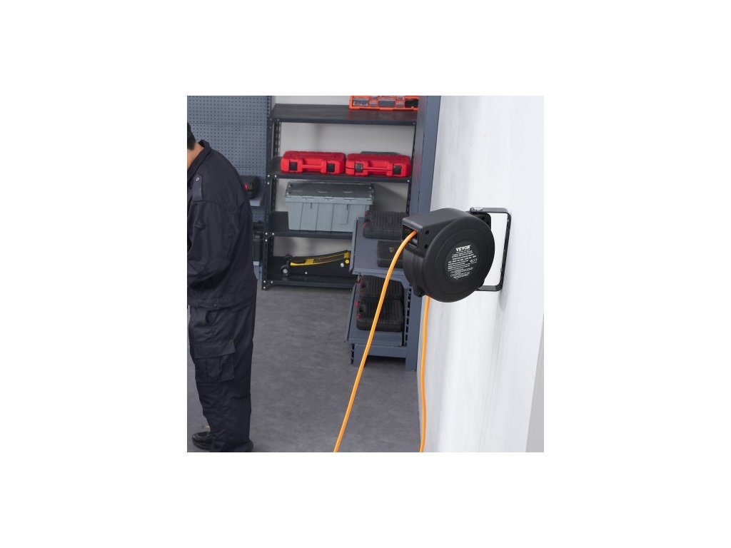 Navíjecí prodlužovací kabel na cívce, 9 m, 1000W, odolný navíjecí napájecí kabel s přívodním kabelem o délce 1 m, ochrana proti přehřátí, nastavitelná zarážka kabelu, pro montáž na strop nebo na zeď