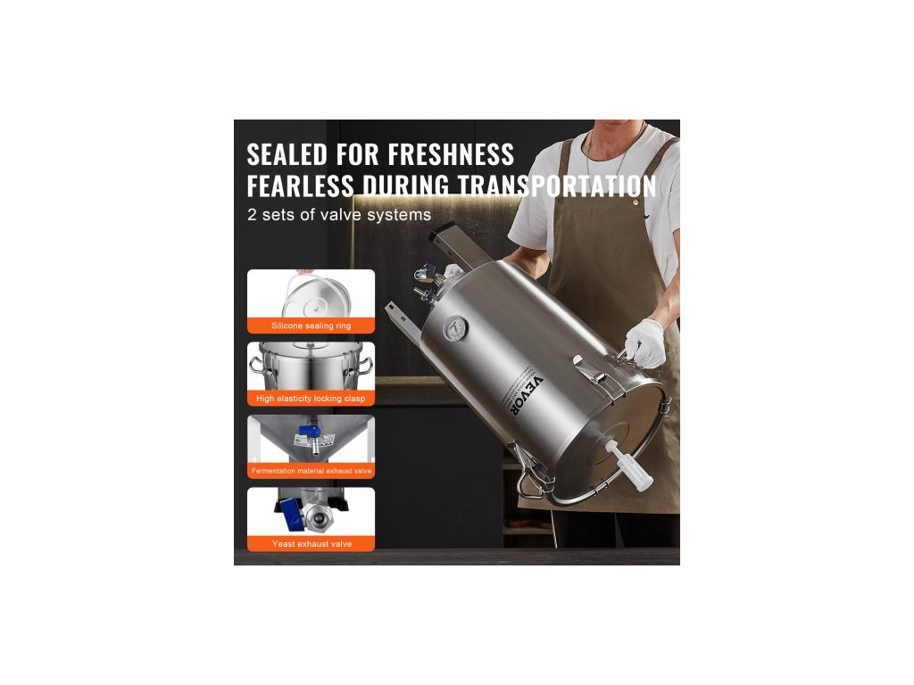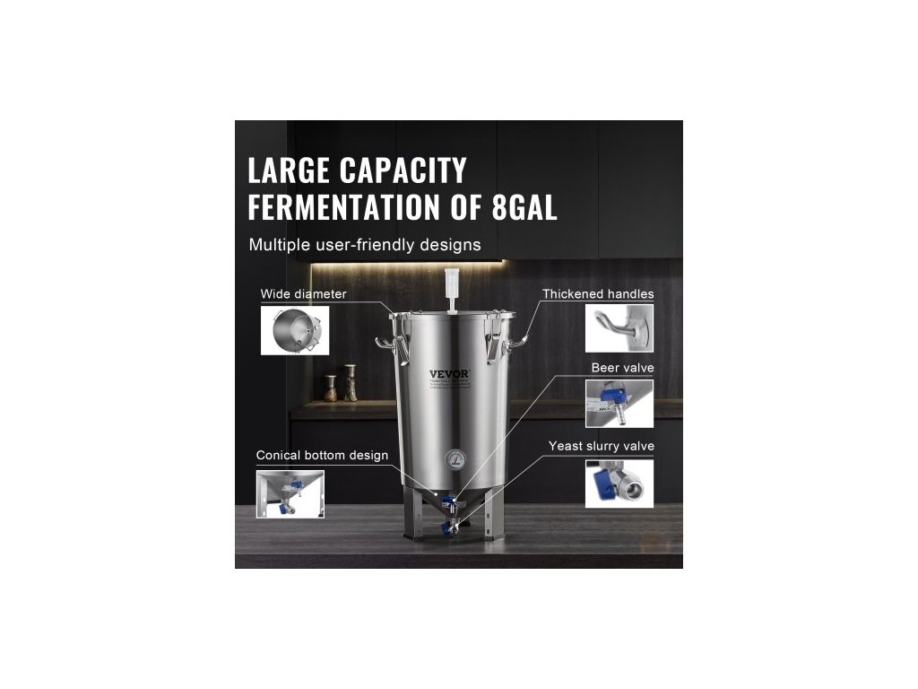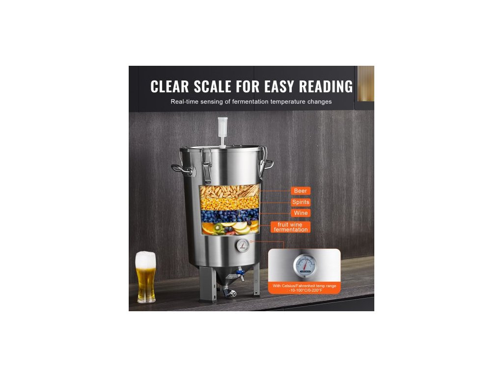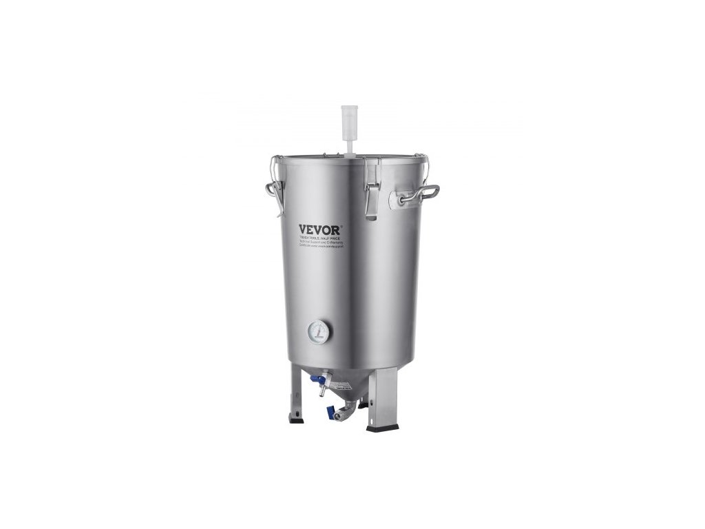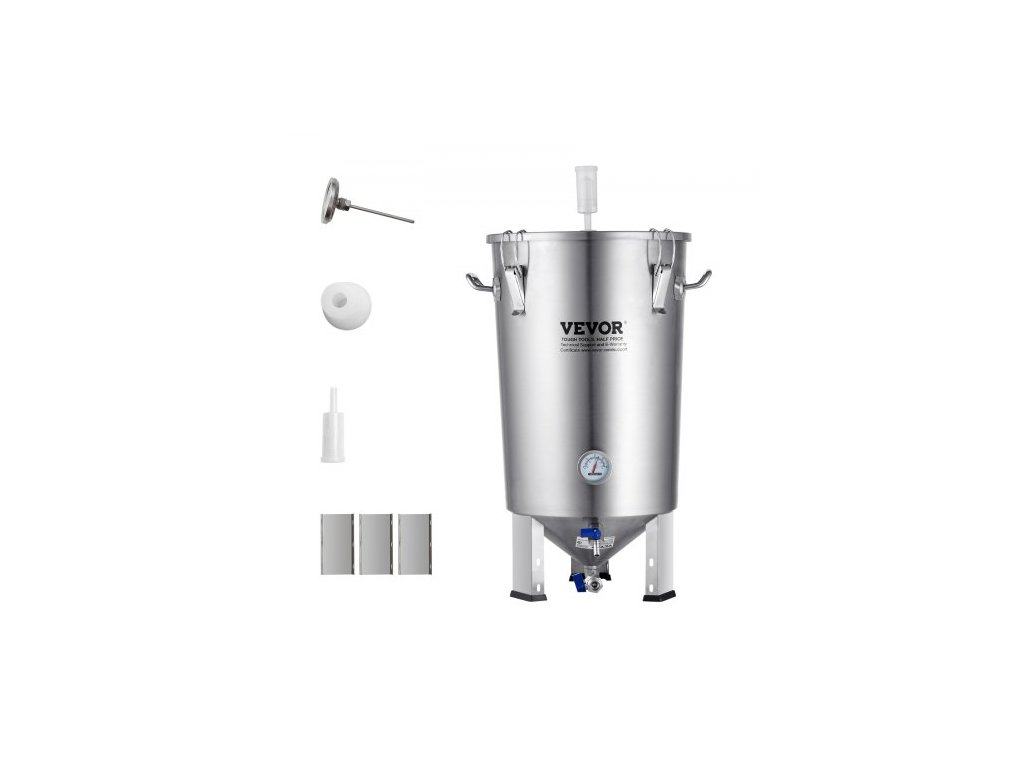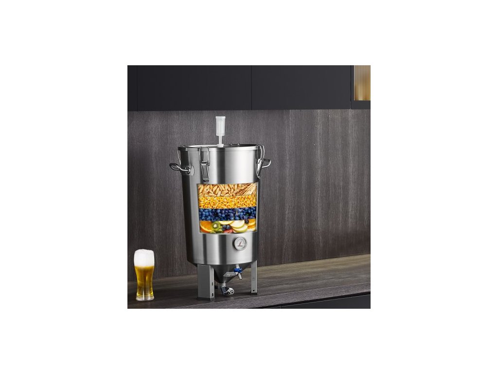 Nerezová konvice 304, fermentor na pivo o objemu 30 l, fermentor na pivo s vědrem, domácí potřeby pro vaření piva se základnou, konvice na pivo včetně víka, rukojeti, ventilu, kohoutku a teploměruPrémiový materiál