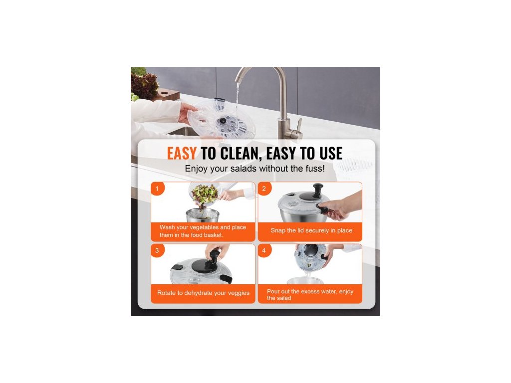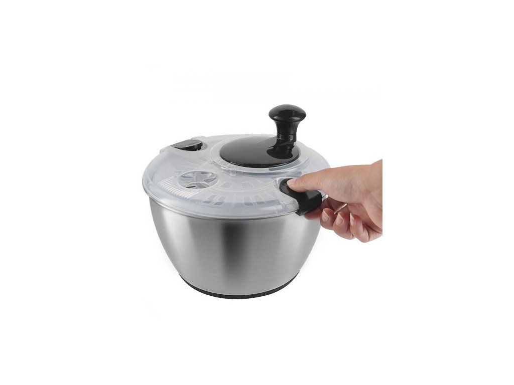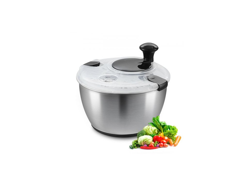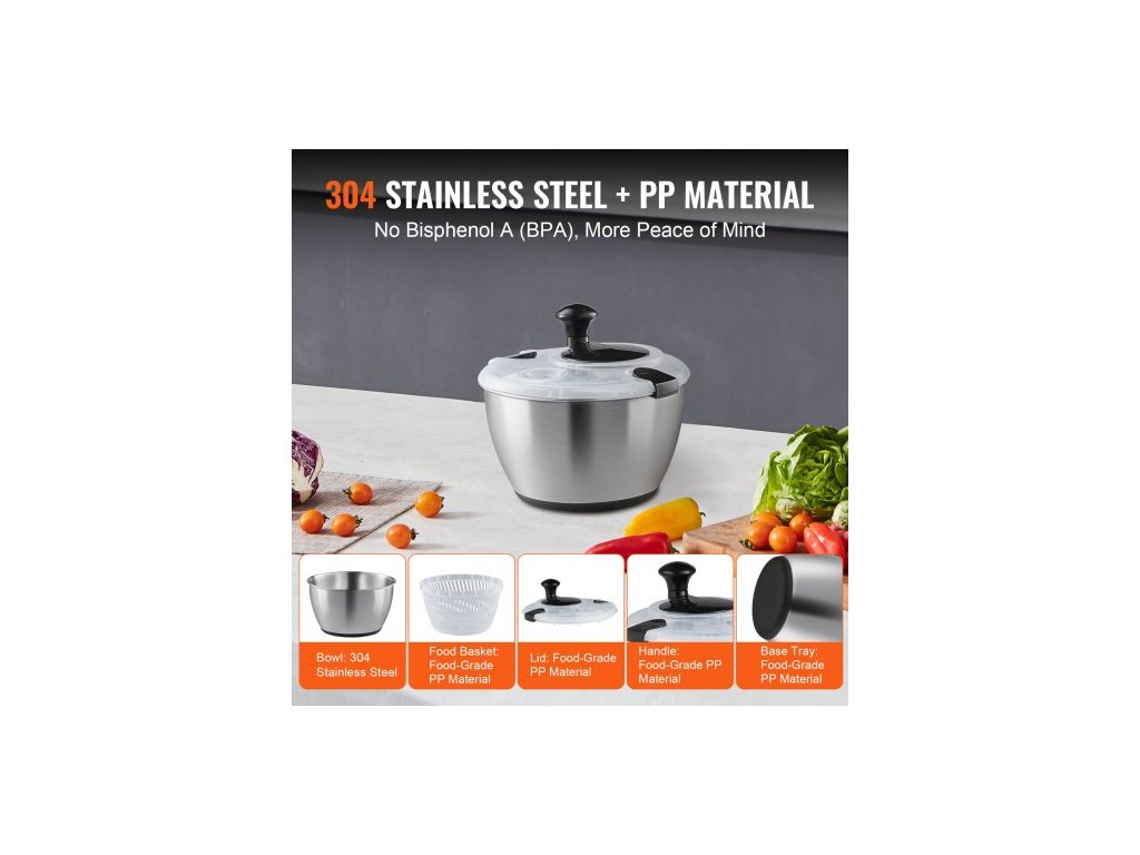 nerezová mísa na salát, 4,75 qt, myčka na zeleninu a velké množství s jednoduchým stisknutím jednou rukou, čistič a sušička salátu s miskou z nerezové oceli 304, na zeleninu, bylinky, bobule a ovoce, bez BPAEfektivní sušení