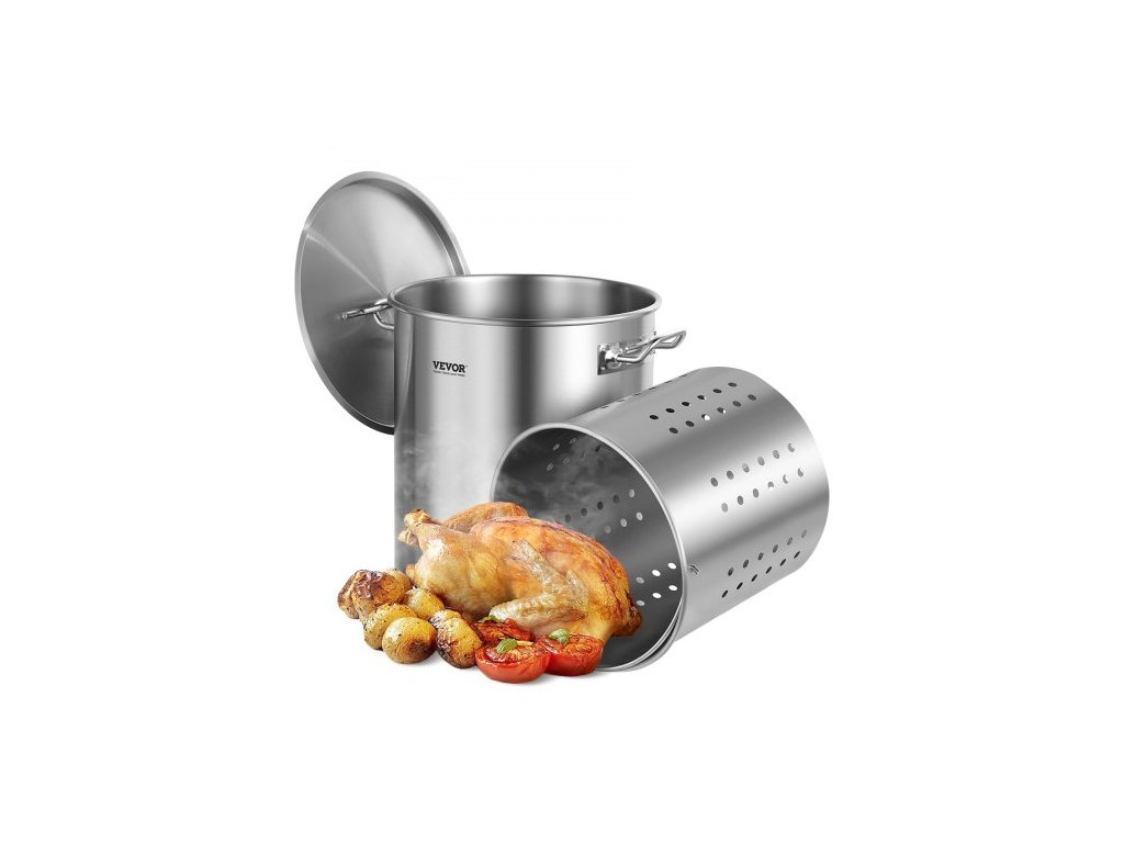 Nerezový hrnec, velké hrnce o objemu 42 litrů, hrnec na omáčku s košíkem, víkem a rukojetí, odolný hrnec komerční kvality, broušení, pro velké skupiny, stříbrnýMultifunkční hrnec