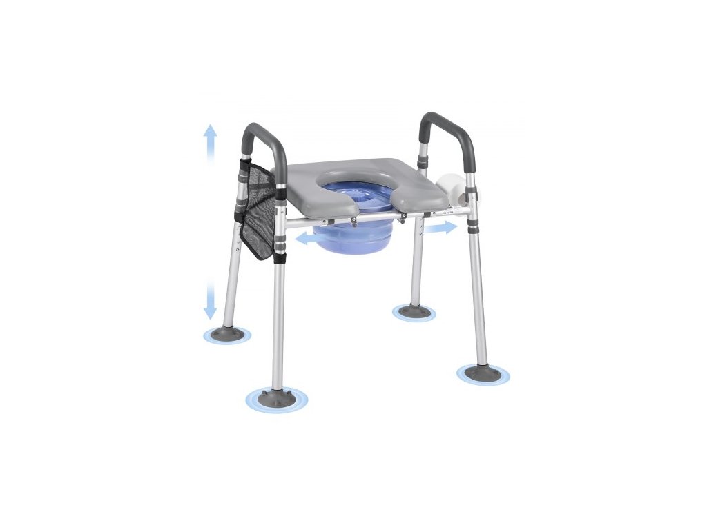 Noční toaletní křeslo , nosnost 227 kg, přenosná toaleta 4 v 1 a vyvýšené sedátko s polstrovaným sedákem a loketní opěrkou, odnímatelné 5litrové kbelík, nastavitelná výška a šířka, nočník pro senioryOdolný rám