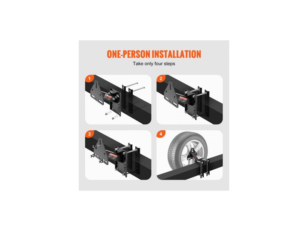 Nosič rezervní pneumatiky , držák rezervní pneumatiky na přívěs, nosnost 72,6 kg, příslušenství pro užitkové přívěsy, pasuje na většinu kol se 4, 5, 6 a 8 výstupky na rozměrech šroubů 10,2 cm, 10,8 cm, 11,4 cm, 12,1 cm, 12,7 cm, 14 cm, 15,2 cm, 16,5