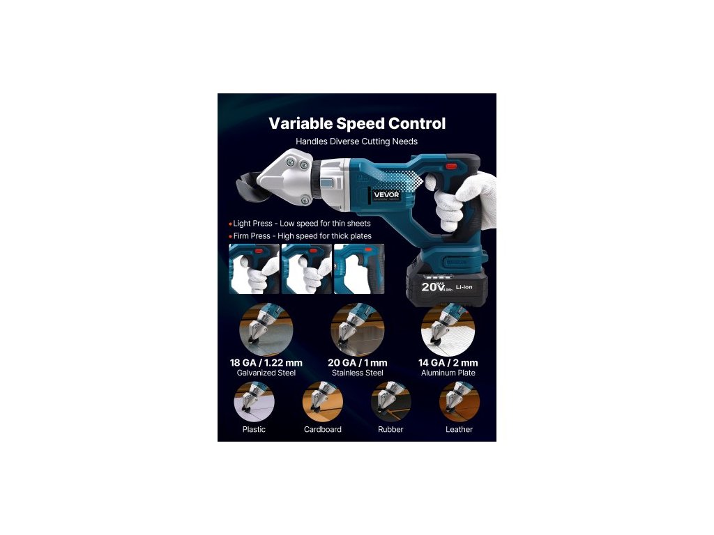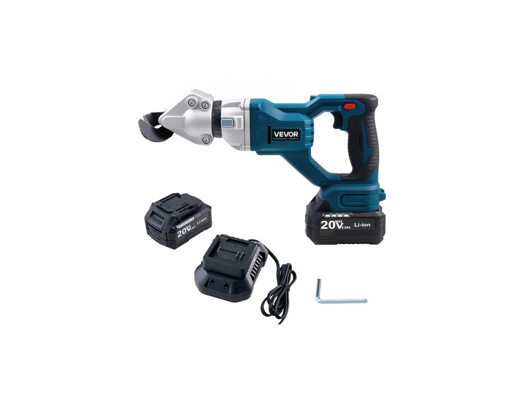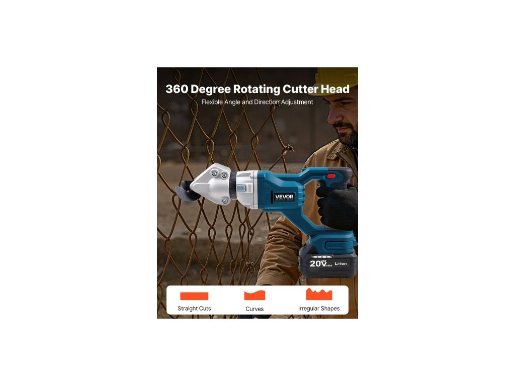 Nůžky na kov , akumulátorové řezačky plechů s otočnou hlavou o 360 stupňů, dvojité čepele, 220 V AC 20 V DC, řeže 1,22 mm pozinkovanou ocel, 1 mm nerezovou ocel, hliník, plast, karton, 2800 zdvihů za minutuVýkonný řezný výkon