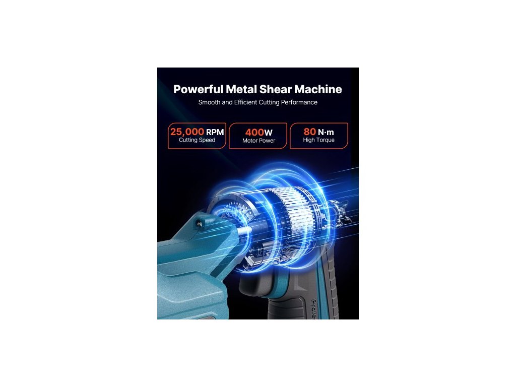 Nůžky na kov , akumulátorové řezačky plechů s otočnou hlavou o 360 stupňů, dvojité čepele, otáčky 25 000 ot./min, řeže 1,22 mm pozinkovanou ocel, 1 mm nerezovou ocel, hliníkový plech, plast, kartonVýkonný řezný výkon