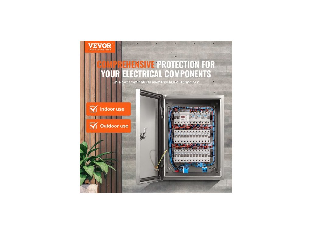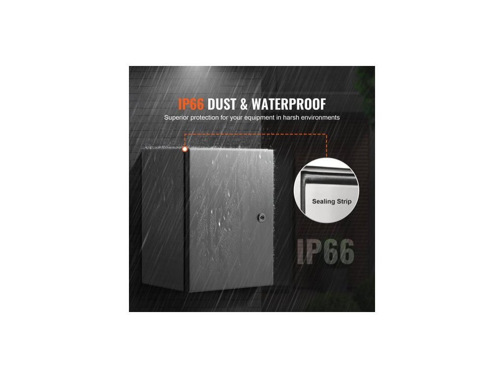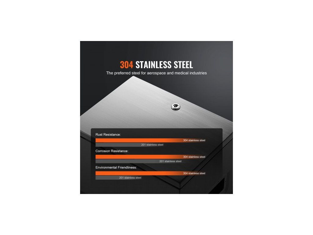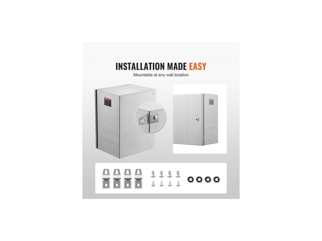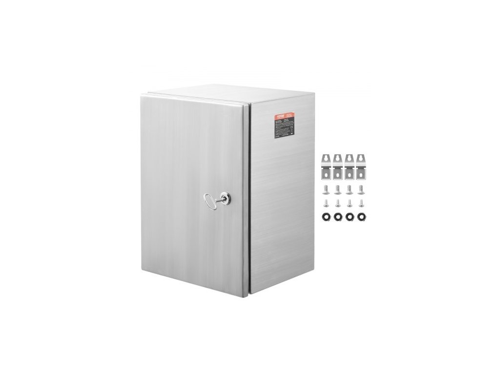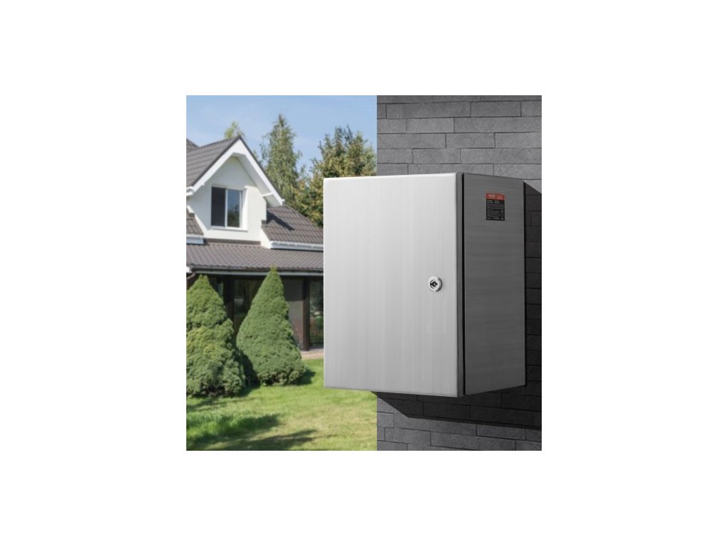 Ocelová elektrická krabice , 40,6 x 30,5 x 15,2 cm, nerezová ocel 304, nástěnná venkovní krabička pro elektrická a elektronická zařízení s montážní deskou, panty a zámkem, vodotěsnost IP66Nerezová elektrická krabice