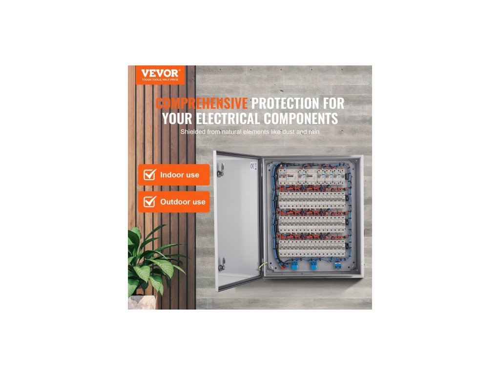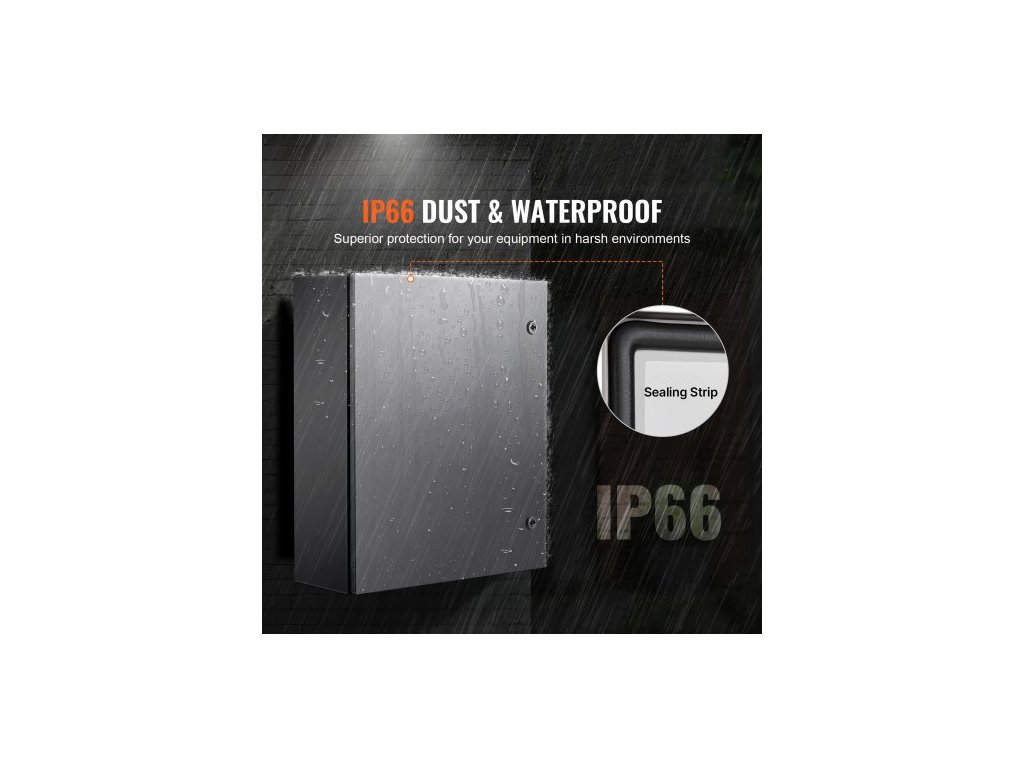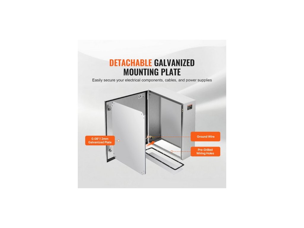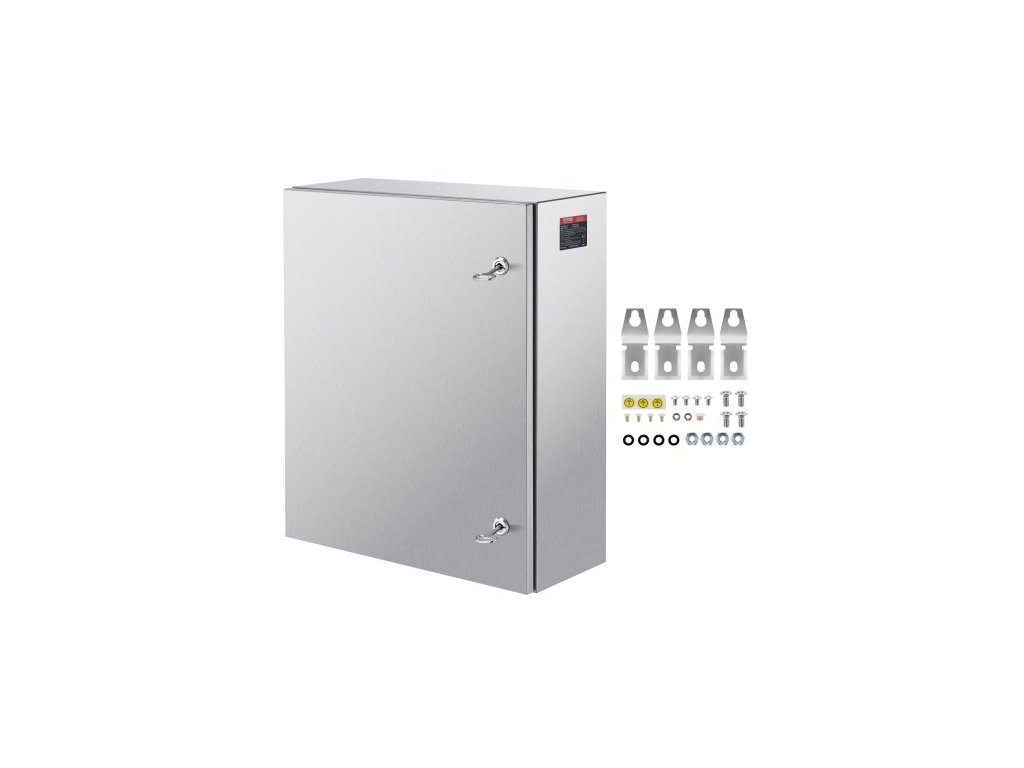 Ocelová elektrická krabice , 60x50x20 cm, nerezová ocel 304, nástěnná venkovní krabička pro elektrická a elektronická zařízení s montážní deskou, panty a zámkem, vodotěsná IP66