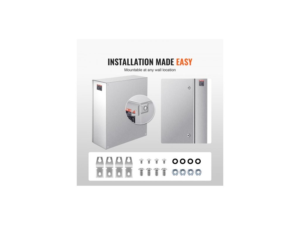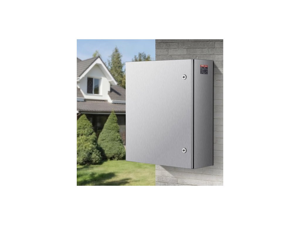 Ocelová elektrická krabice , 60x50x20 cm, nerezová ocel 304, nástěnná venkovní krabička pro elektrická a elektronická zařízení s montážní deskou, panty a zámkem, vodotěsnost IP66Nerezová elektrická krabice