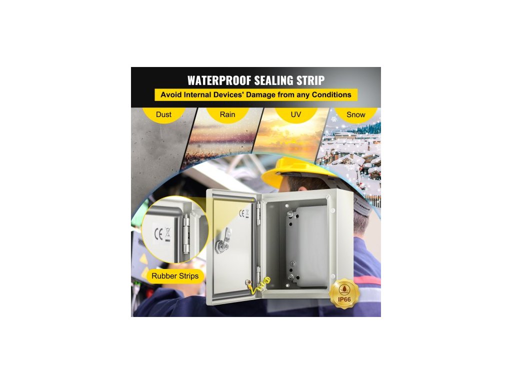 Ocelová skříň NEMA, 25x20x15 cm elektrická krabice z oceli NEMA 4X, vodotěsná a prachotěsná, venkovní/vnitřní rozvodná krabice, s montážní deskouPrémiový ocelový materiál