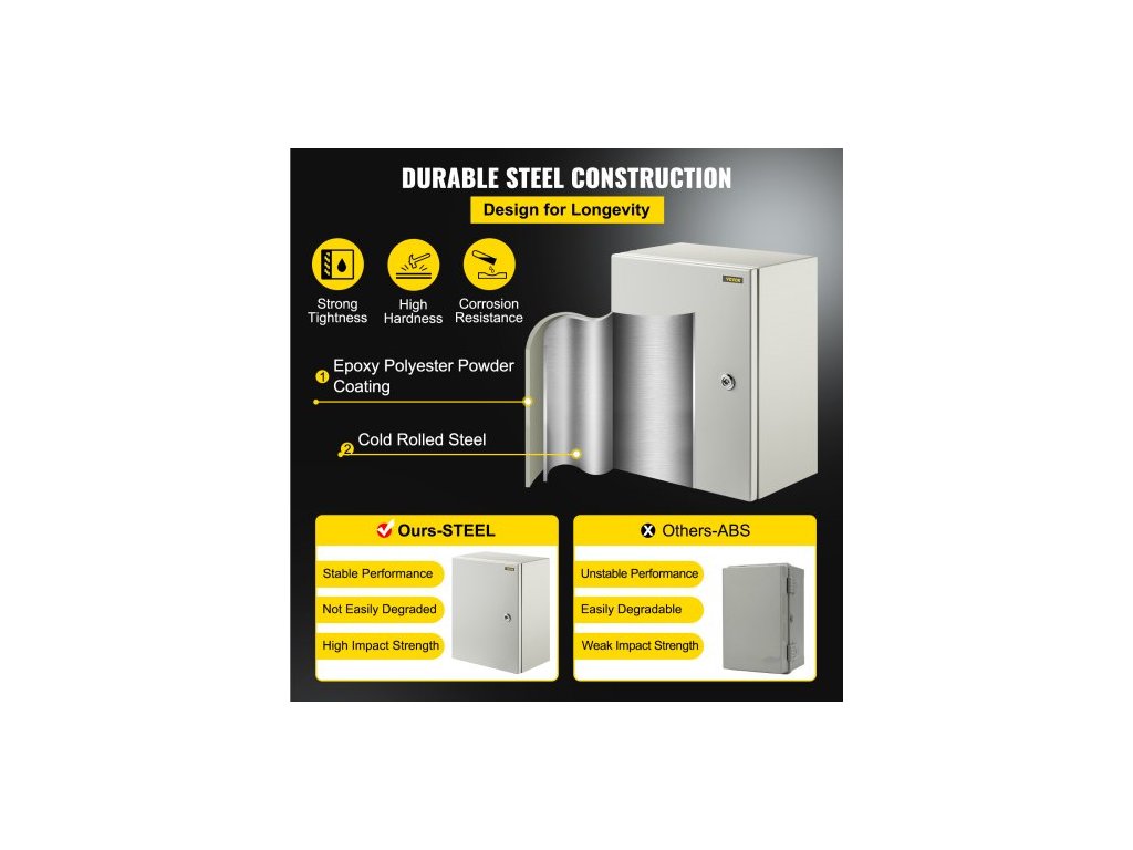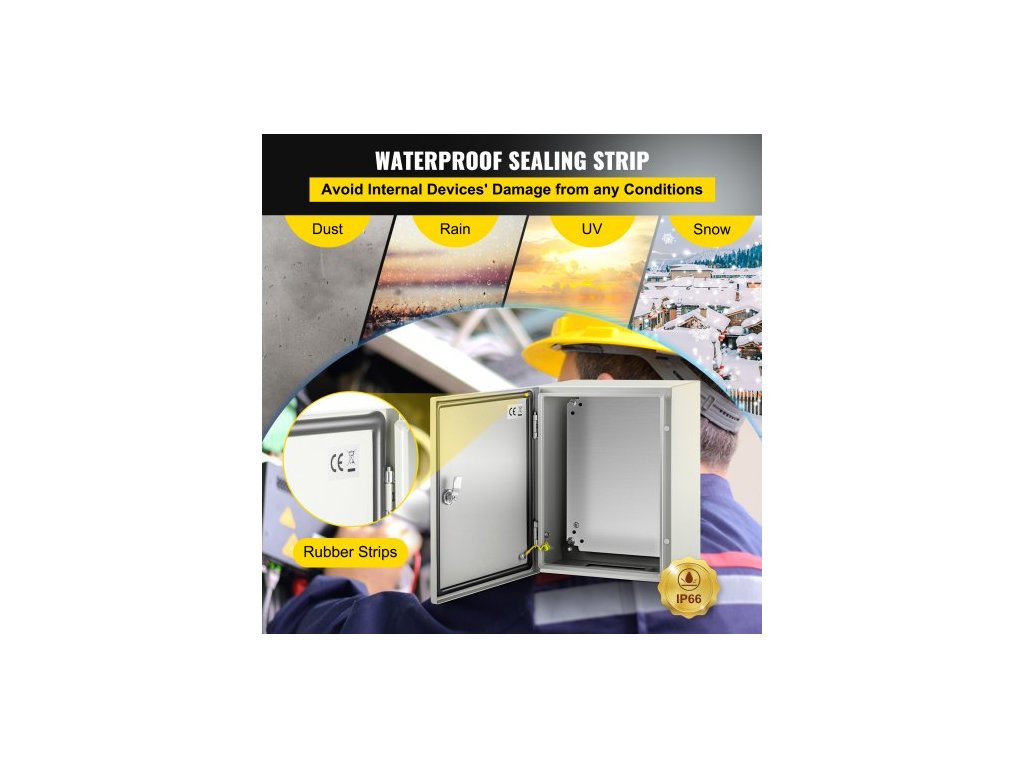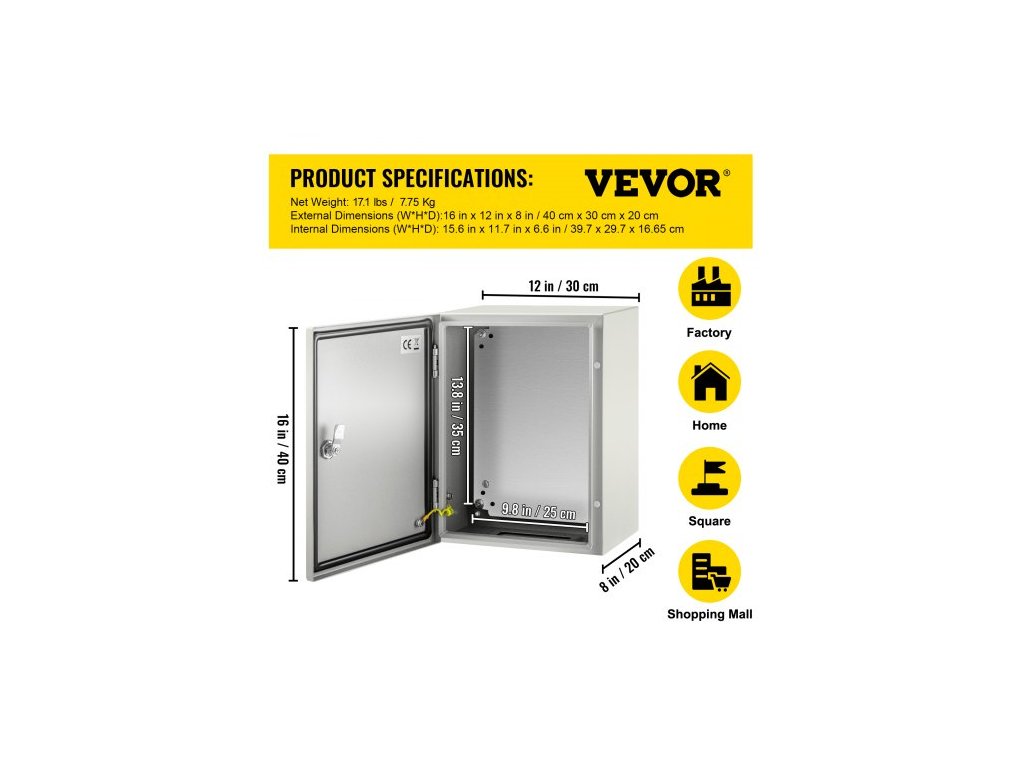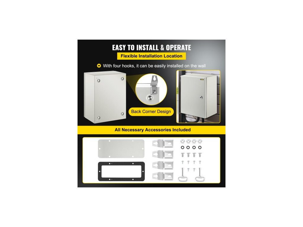 Ocelová skříň NEMA, 40x30x20 cm elektrická krabice z oceli NEMA 4X, IP66 vodotěsná a prachotěsná, venkovní/vnitřní elektrická rozvodná krabice, s montážní deskouPrémiový ocelový materiál
