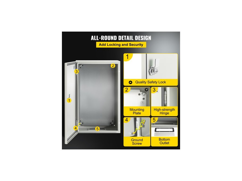Ocelová skříň NEMA, 50,8 x 30,5 x 25,4 cm, elektrická krabice z oceli NEMA 4X, IP66 vodotěsná a prachotěsná, venkovní/vnitřní elektrická rozvodná krabice, s montážní deskouPrémiový ocelový materiál