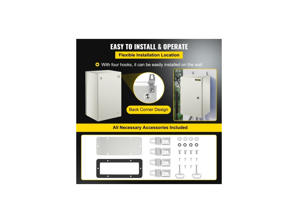 Ocelová krabička NEMA, 50,8 x 30,5 x 25,4 cm, ocelová elektrická krabice NEMA 4X, IP66, vodotěsná a prachotěsná, venkovní/vnitřní elektrická rozvodná krabice, s montážní deskou