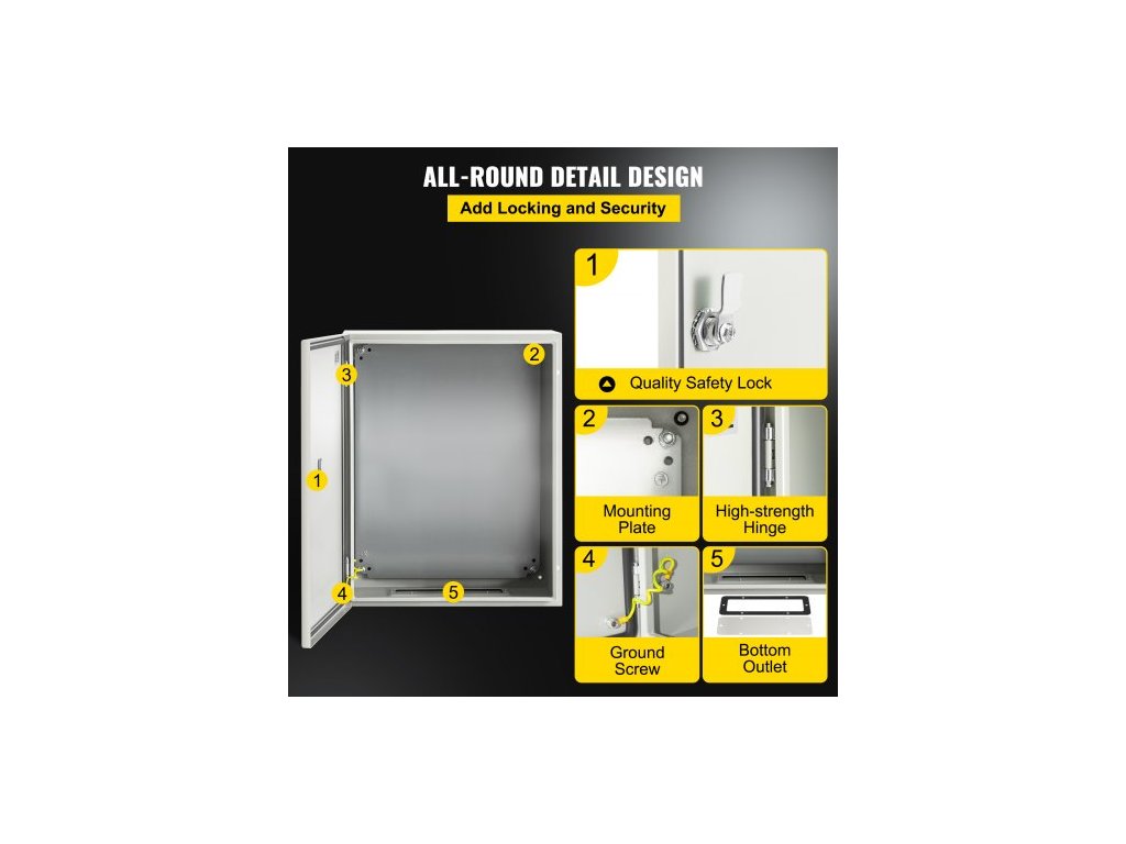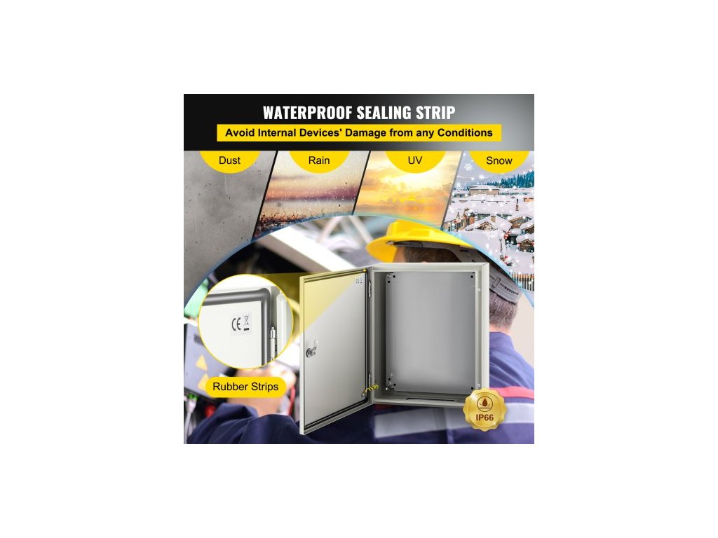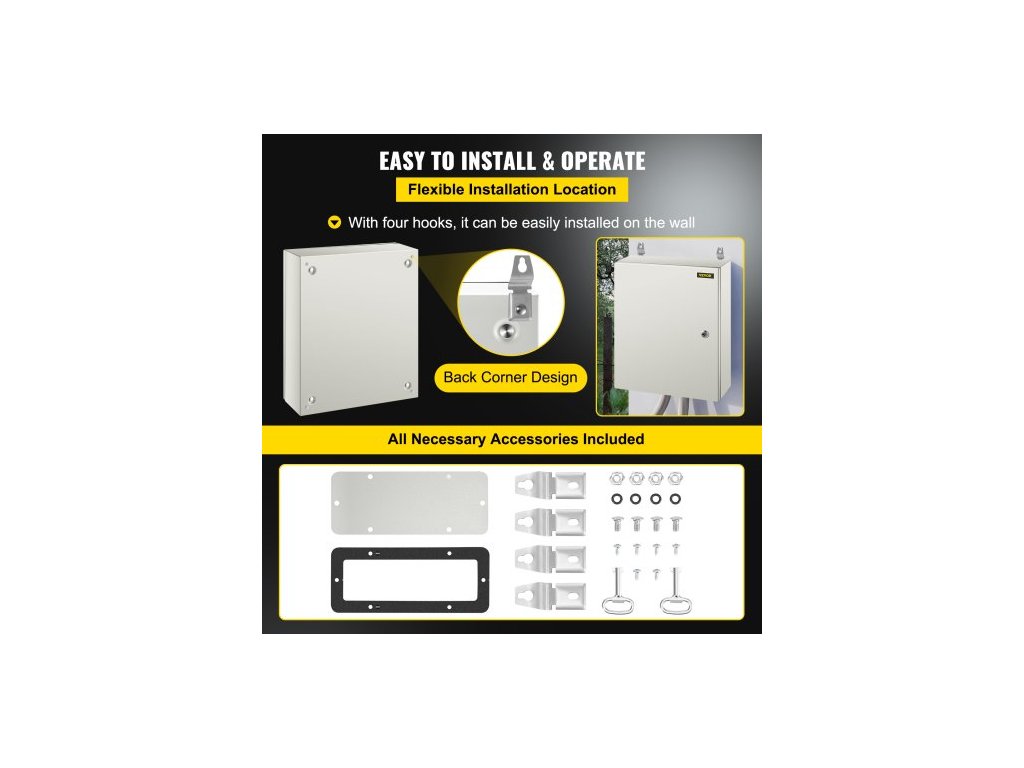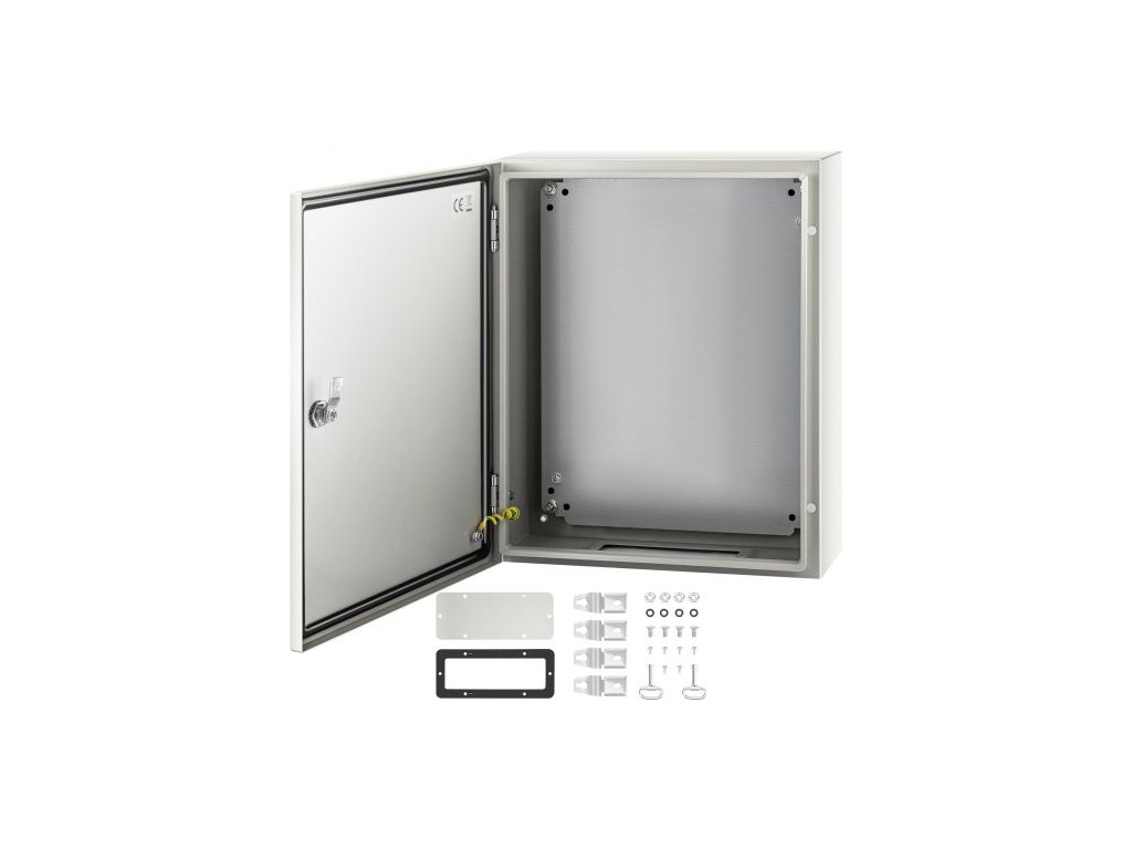 Ocelová skříň NEMA, 50x40x15 cm elektrická krabice z oceli NEMA 4X, vodotěsná a prachotěsná, venkovní/vnitřní elektrická rozvodná krabice, s montážní deskouPrémiový ocelový materiál