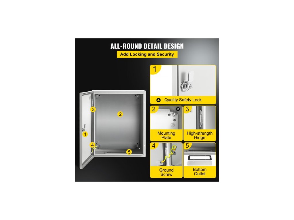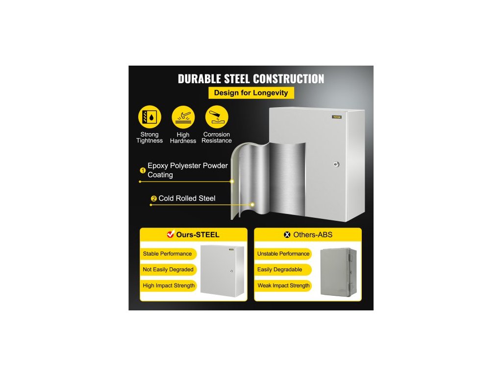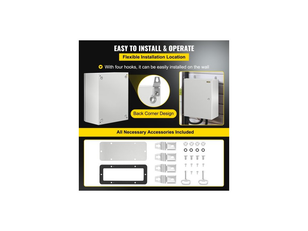 Ocelová skříň NEMA, 50x40x25 cm, elektrická krabice z oceli NEMA 4X, vodotěsná a prachotěsná IP66, venkovní/vnitřní elektrická rozvodná krabice, s montážní deskouPrémiový ocelový materiál