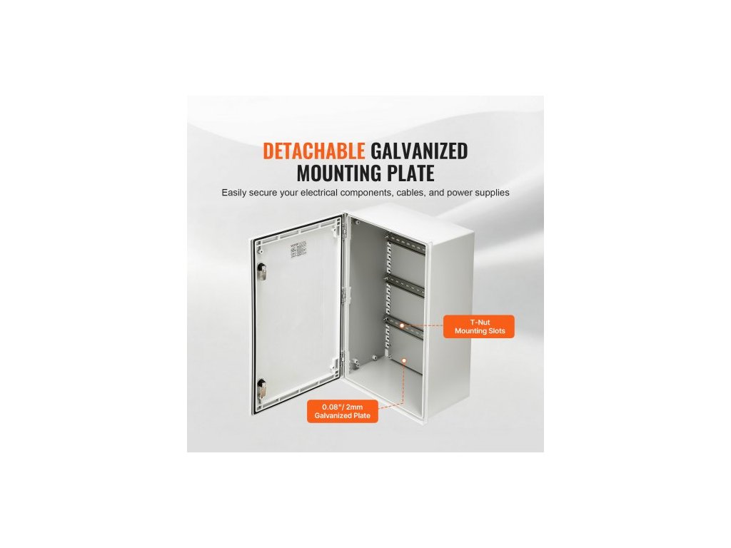 Ocelová krabička NEMA, 60x40x23 cm, sklolaminátová elektrická krabice NEMA 4X, IP66 vodotěsná a prachotěsná, venkovní/vnitřní elektrická rozvodná krabice, s montážní deskou