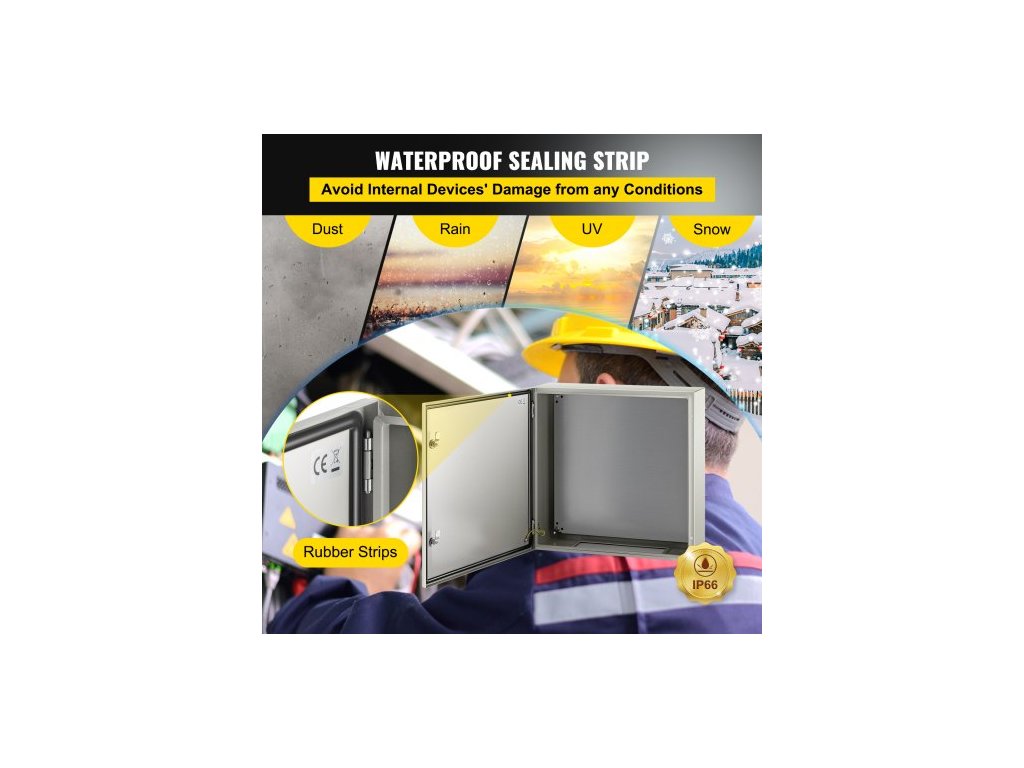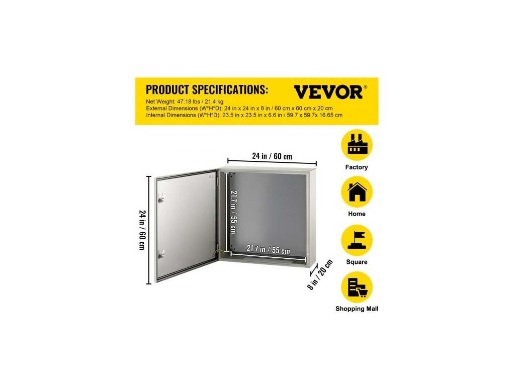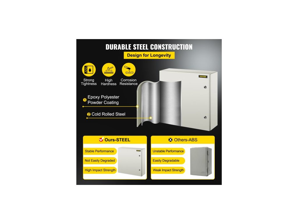 Ocelová skříň NEMA, 60x60x20 cm, elektrická krabice z oceli NEMA 4X, vodotěsná a prachotěsná, venkovní/vnitřní rozvodná krabice, s montážní deskouPrémiový ocelový materiál
