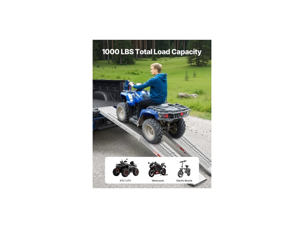 Ocelové rampy , 1000 liber, 2 ks, odolné rampy s širší plochou, univerzální stabilní nakládací rampa s rukojeťmi, vhodné pro čtyřkolky, UTV, motocykly, elektrická kola atd.