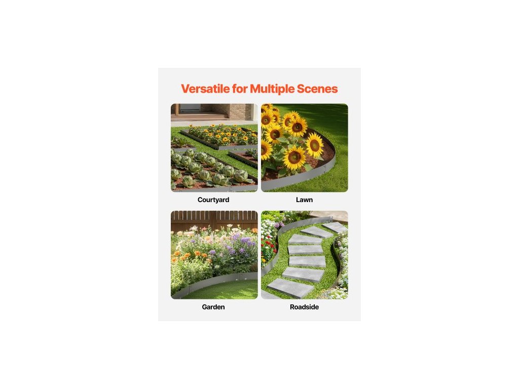 Ocelové zahradní obruby , 5 kusů, 91 x 13 cm, kovové zahradní obruby odolné proti korozi, ohebné zahradní obruby, odolné obruby trávníku, snadno se instalují, dělicí záhon, tmavě šedá