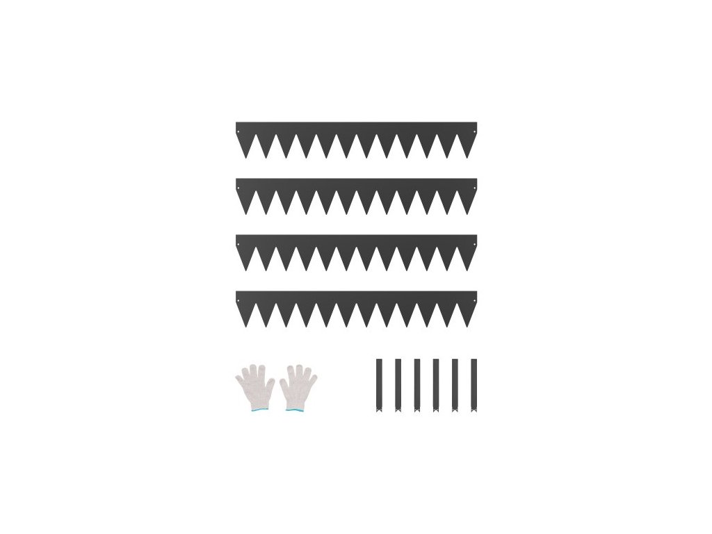 výška povrchu: 72,4 mm, klipy: 6 ks, 38 x 208 mm, počet lemů: 4 ks, hřebíky: nejsou součástí balení, barva produktu: černá, číslo modelu: ZY-40X6-4 černá, hmotnost produktu: 6,4 kg, rozměry produktu: 102 x 15 x 0,06 palce 1016 x 152,4 x 1,5 mm, Výška hrotu: 3,15 palce / 80 mm, Hlavní materiál: Pozinkovaná ocel