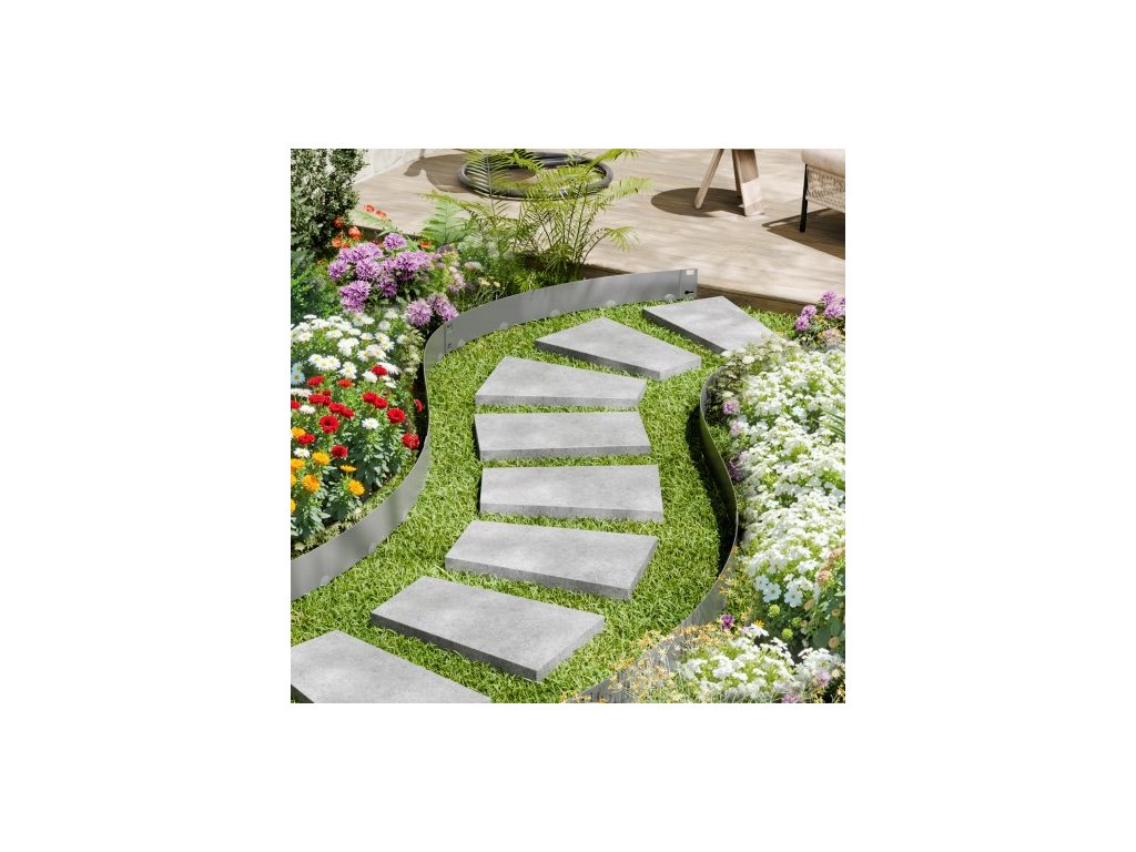 Ocelové zahradní obruby , balení 5 kusů, kovové zahradní obruby odolné proti korozi, ohýbatelné zahradní obruby, odolné obruby trávníku, snadno se instalují, dělicí záhon, tmavě šedá