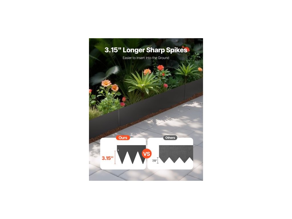 Ocelové zahradní obruby , balení 6 kusů, kovové zahradní obruby odolné proti korozi, ohýbatelné zahradní obruby, odolné obruby trávníku, snadno instalovatelné, dělicí záhon, černá