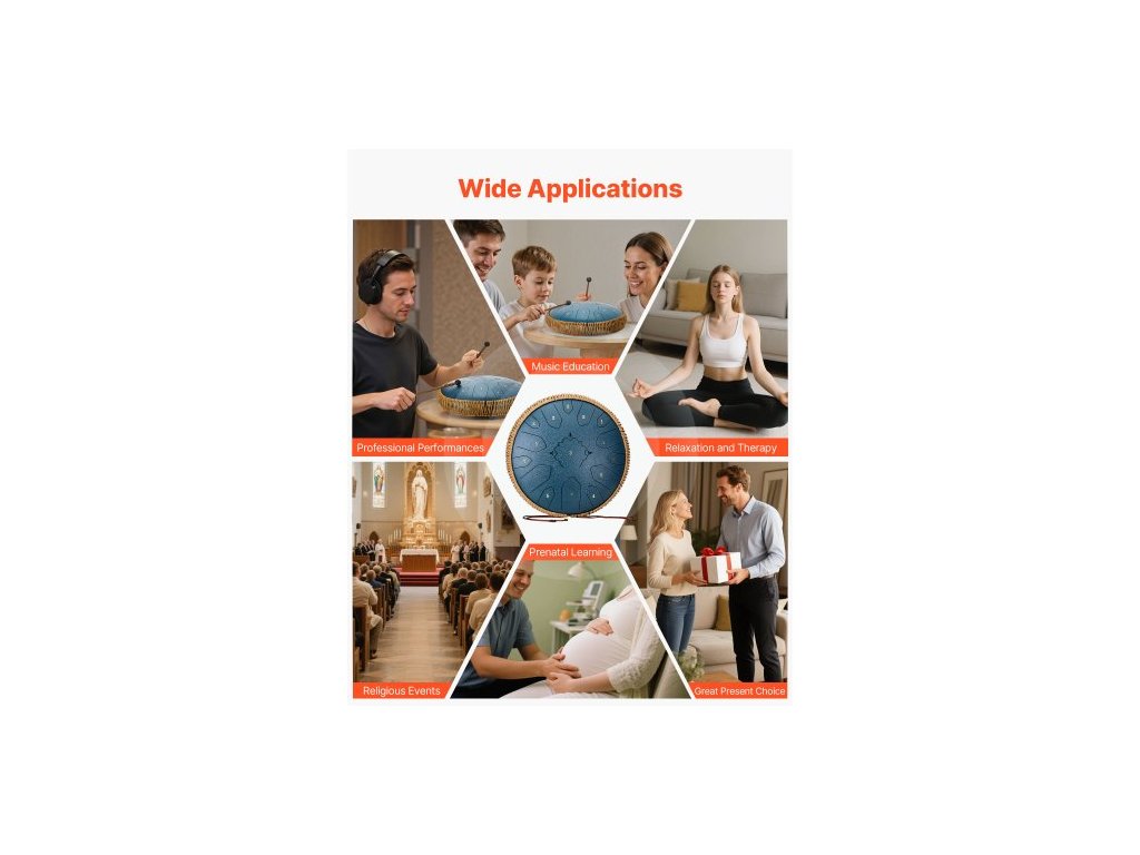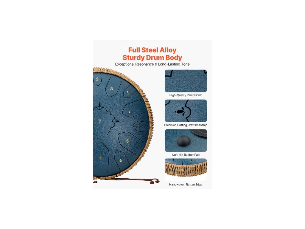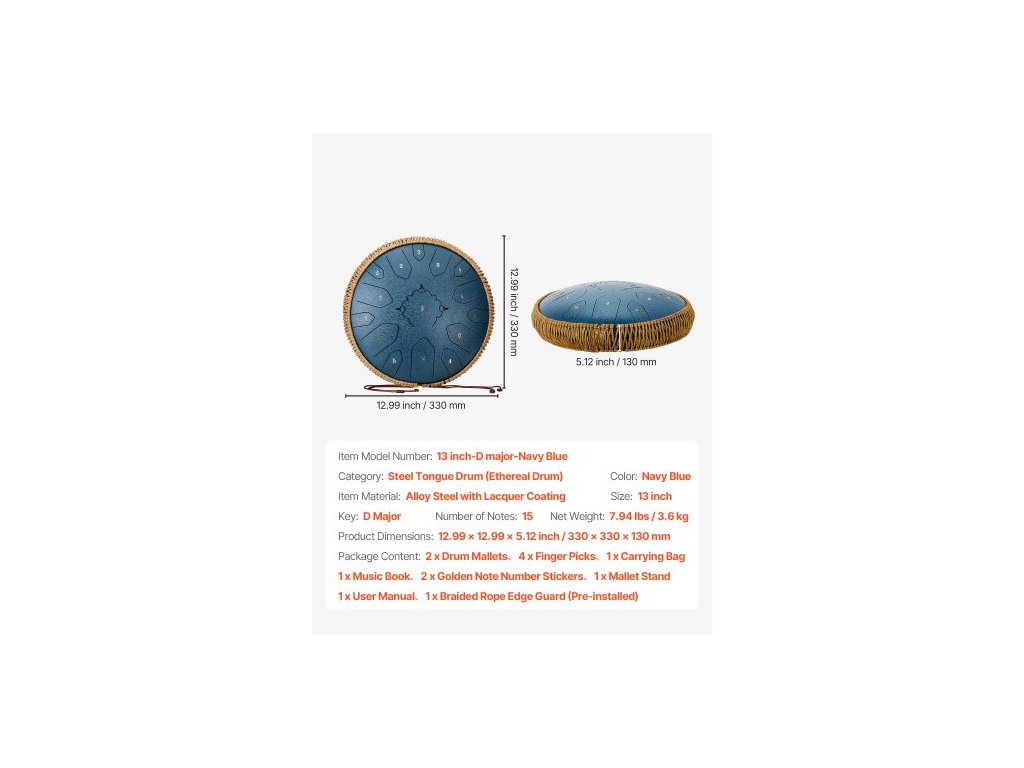 Kategorie: Ocelový bubínek s jazykem (éterický bubínek),Materiál výrobku: Legovaná ocel s lakovaným povlakem,Velikost: 13 palců,Barva: Tmavě modrá,Číslo modelu výrobku: 13 palců - D dur - Tmavě modrá,Počet not: 15,Rozměry výrobku: 12,99 x 12,99 x 5,12 palce/330 x 330 x 130 mm,Čistá hmotnost: 7,94 lbs/3,6 kg,Tónina: D dur