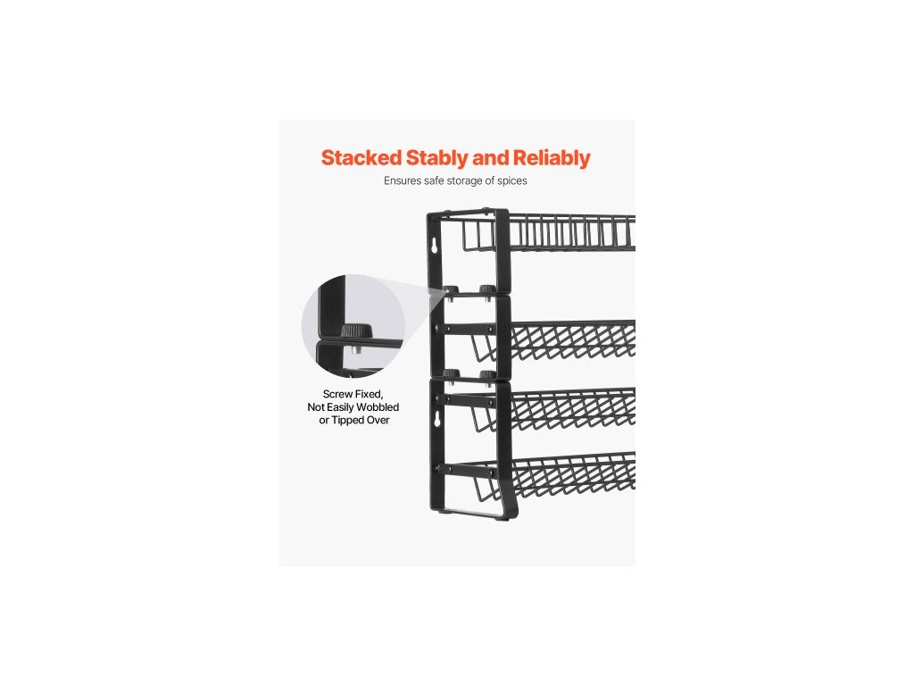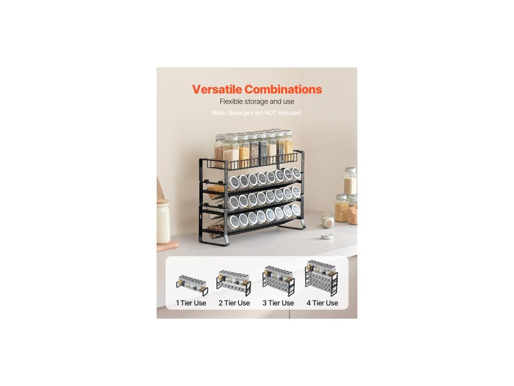 Odnímatelný organizér na koření do skříňky, stohovatelný organizér na koření se 4 úchyty, úložný prostor do kuchyňské spíže na pracovní desku, 15,8x10,7 palceVelkokapacitní úložný prostor