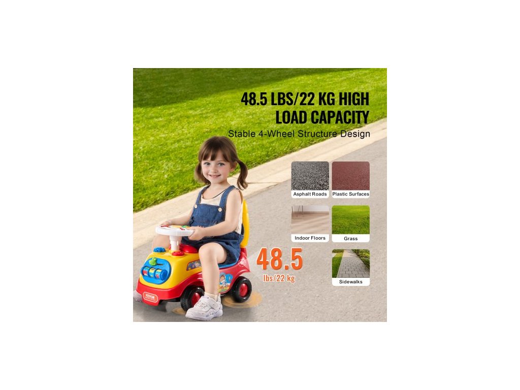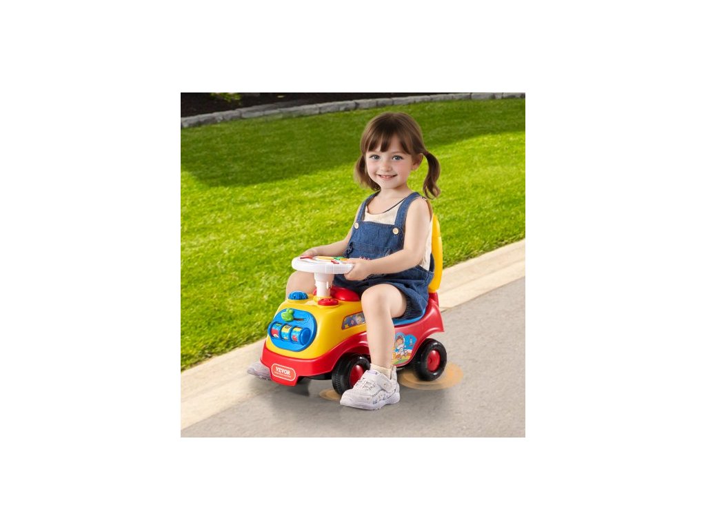 Odrážecí autíčko pro batolata, věk 1-3 roky, závodní auto, hračka pro batolata s možností sezení a stání, klasické dětské autíčko s hudebním volantem, klaksonem a úložným prostorem pod sedadlem, hračka pro chlapce a dívky
