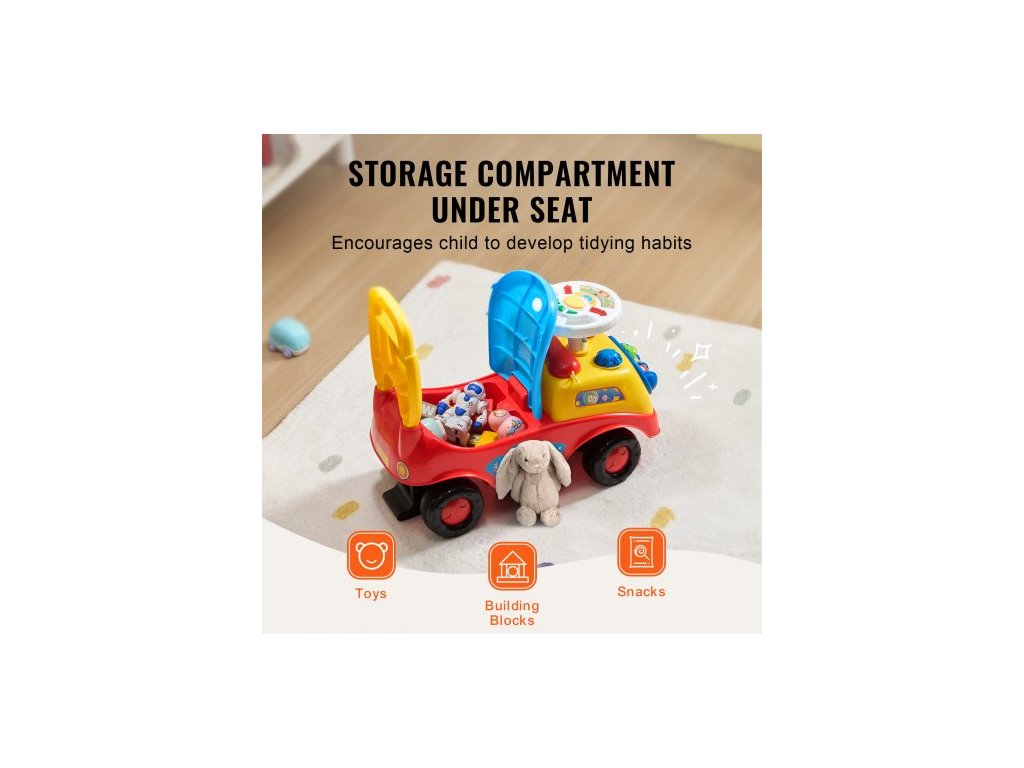 Odrážedlo pro batolata, věk 1-3 roky, Závodní auto, Hračka pro batolata s možností sezení a stání, Klasické dětské odrážedlo s hudebním volantem, klaksonem a úložným prostorem pod sedadlem, Hračka pro chlapce a dívkyIdeální pro děti od 1 do 3 let