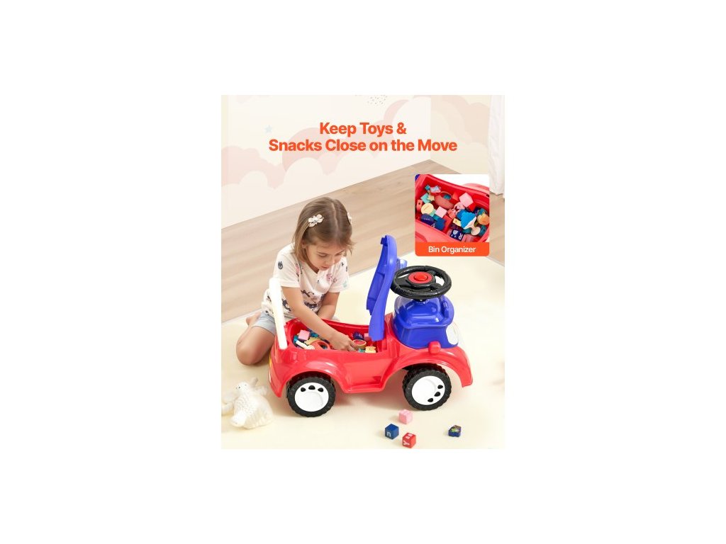 Odrážedlo pro batolata, Odrážedlo pro batolata 19 až 36 měsíců, Dětská odrážedla s hudbou a úložným prostorem pod sedadlem, nosnost 25 kg, Chodítko od nohy k podlaze pro batolata, chlapce a dívky, ČervenéRůstová hračka