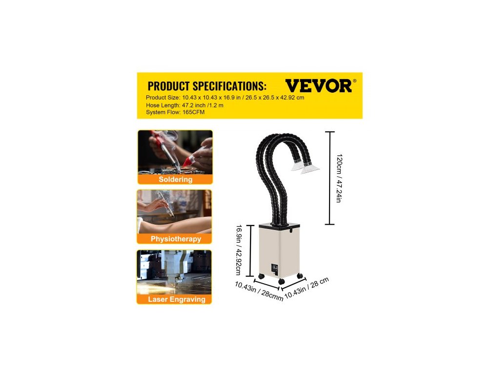 Odsávač kouře z pájky , 150W, pohlcovač kouře 106 CFM, 3stupňové filtry, 3 rychlosti s hadicí pro pájení, laserové gravírování a kutilské svařováníProfesionální čištění
